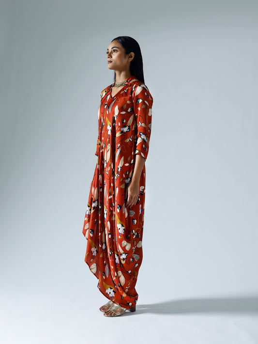Vivid Red Draped Dress