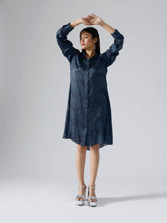 Abstract Lines Cyan Shirt Dress