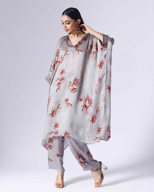 FLORAL GRID LONG KAFTAAN SET