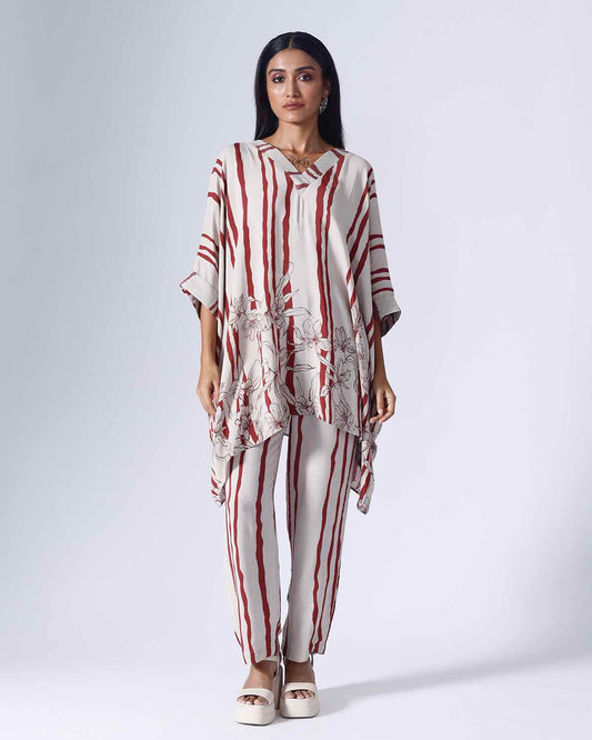 FLORAL STRIPE SHORT KAFTAAN SET