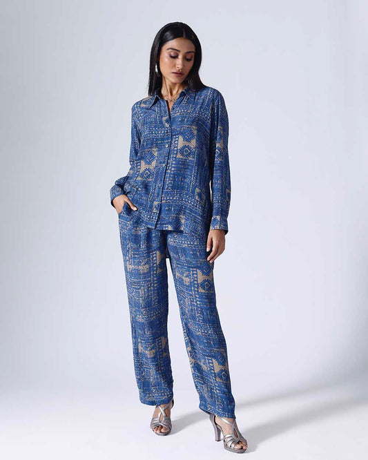 FLORAL STRIPE BLUE COORD SET