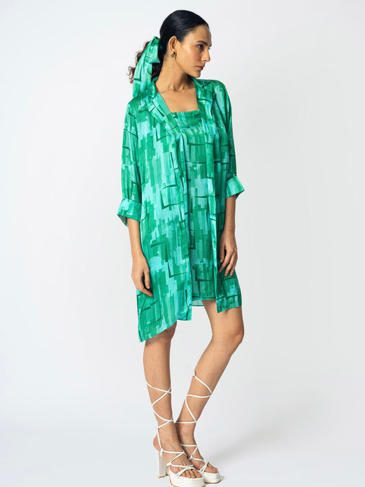Brick Green Jacket with Slip Dress
