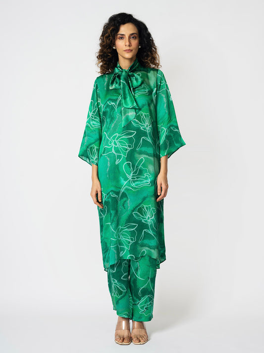 Brick Green Coord Set with detachable scarf