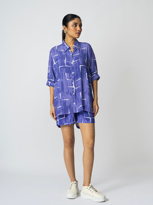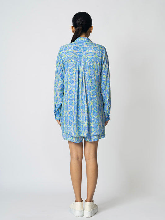 Sneha Advani in Botanic Blue 3pc Shorts Set
