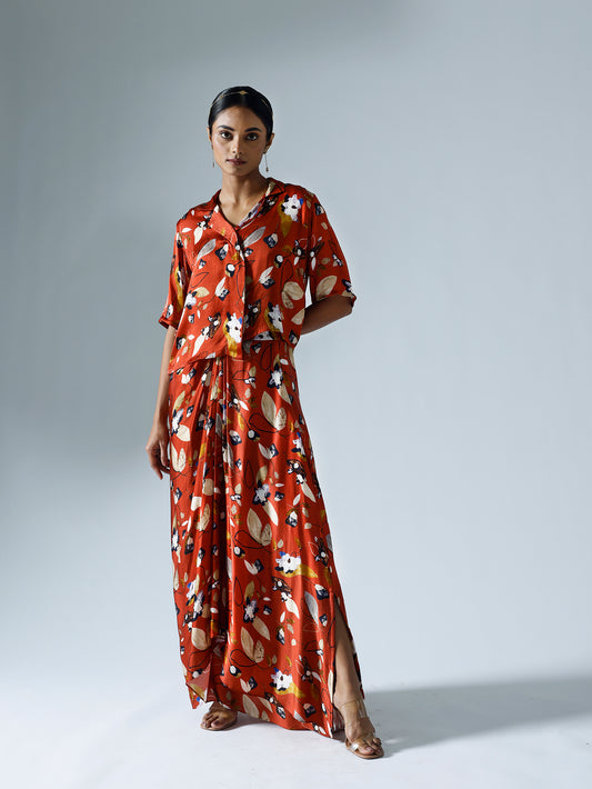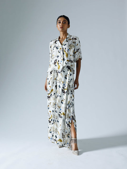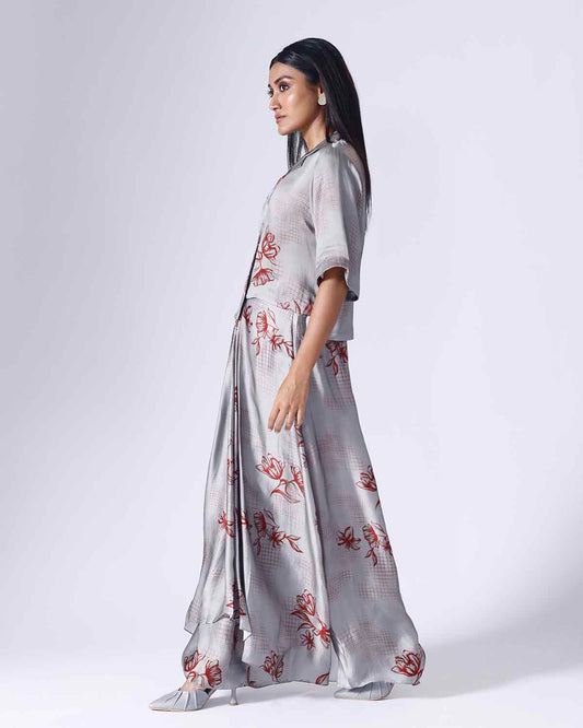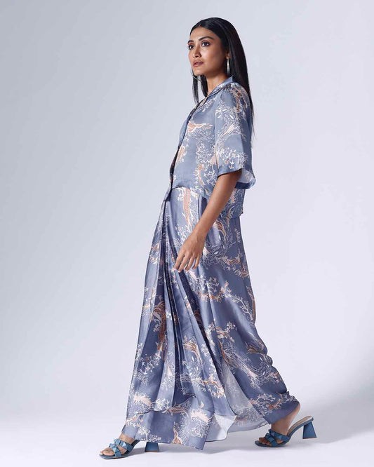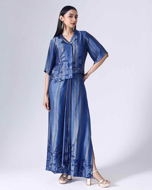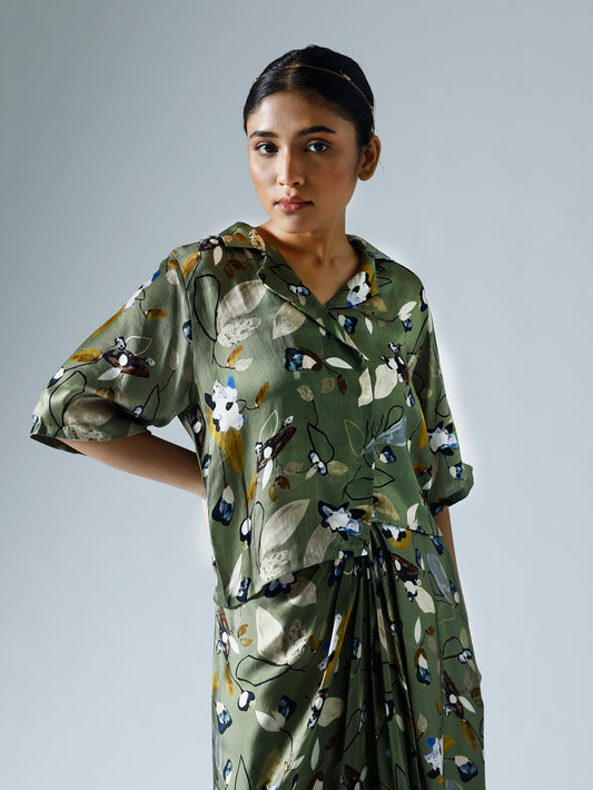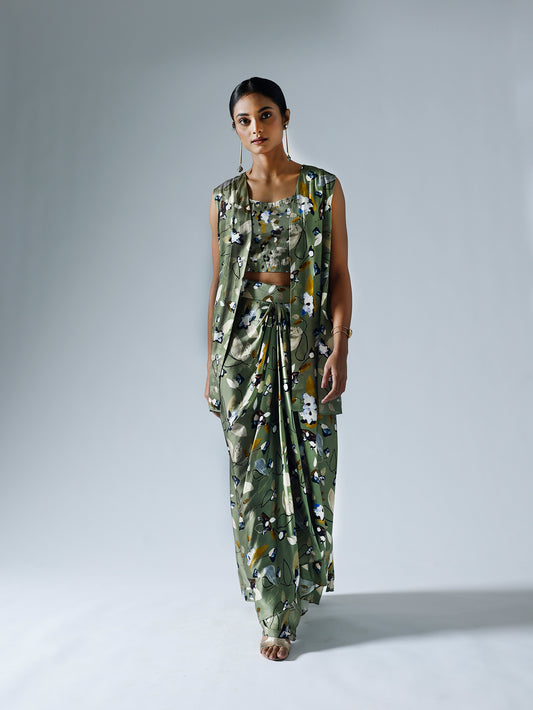 Urmi Daga in Marbled Green Assymetrical Top and Draped Skirt Set