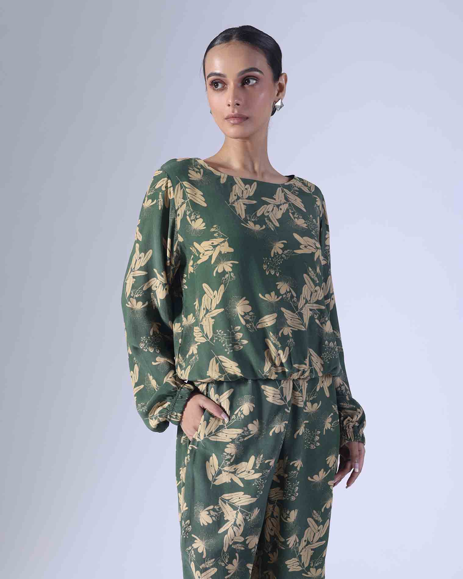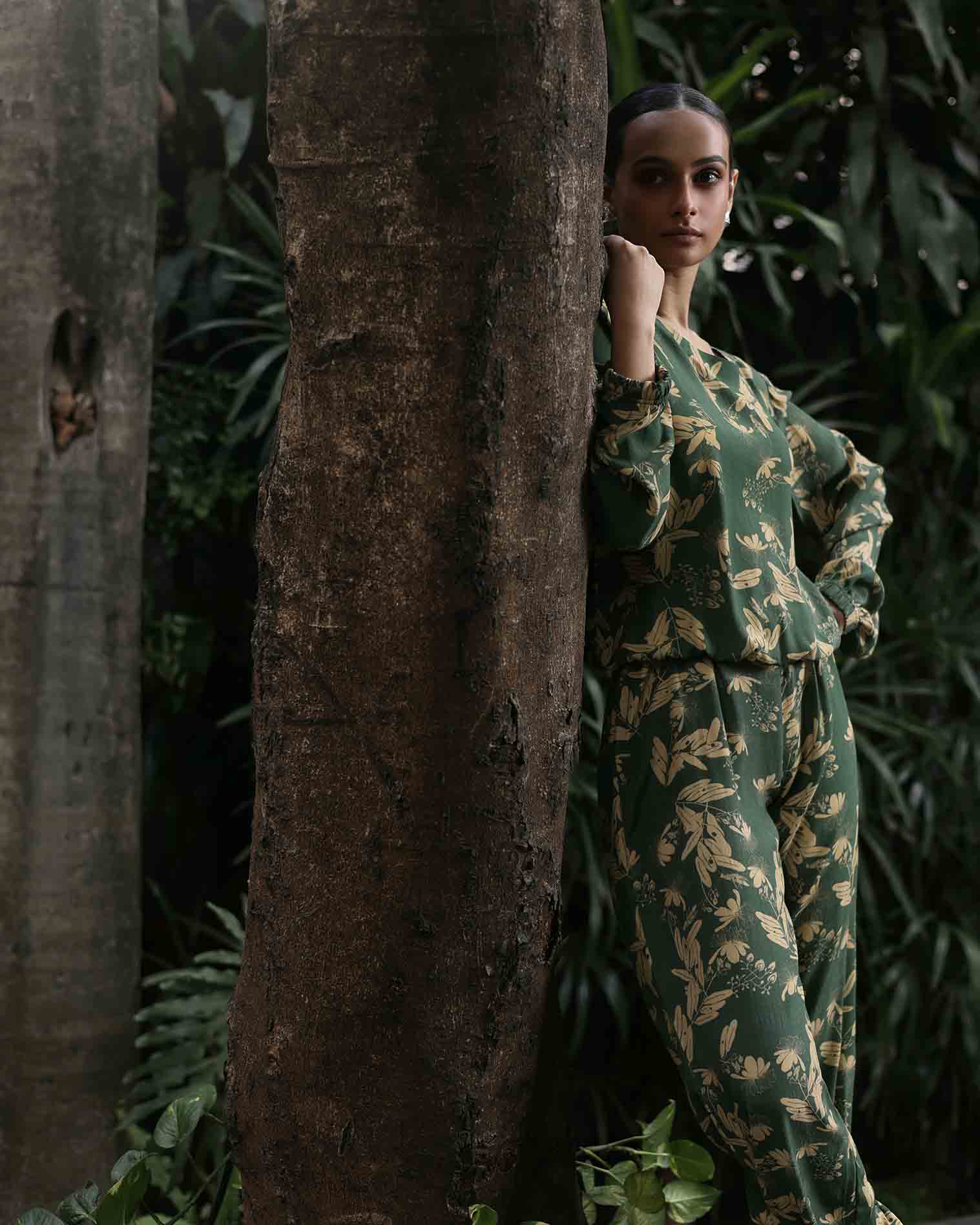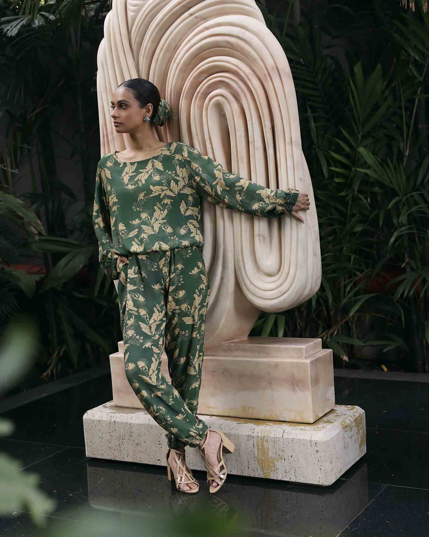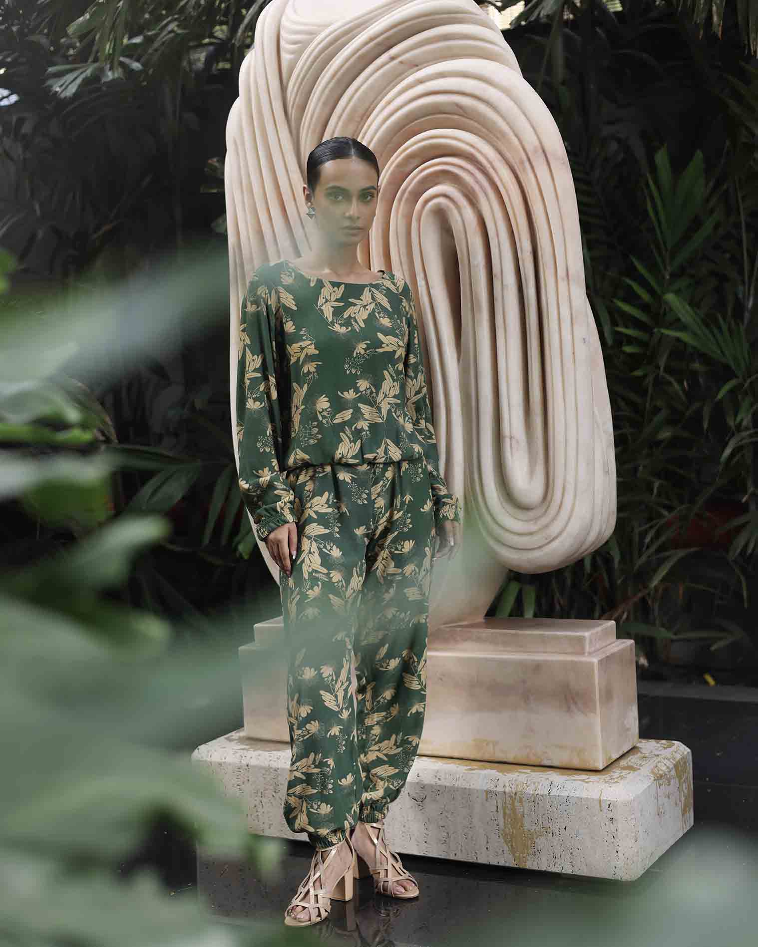 Printed co-ordinated jogger set. Sold as a set of 2. Full sleeve top with elastic on waist and sleeves. Pants with pocket and elastic around the waist and ankle. Mid rise. Regular fit.
