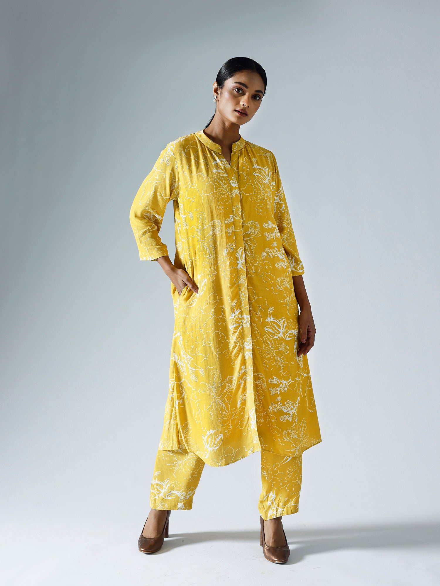 Top in three quarter sleeve with front concealed buttons and side pocket. Pants with pocket and back elastic. Zip fly fastening with a single hook fastening on one side. Mid rise. Regular fit.