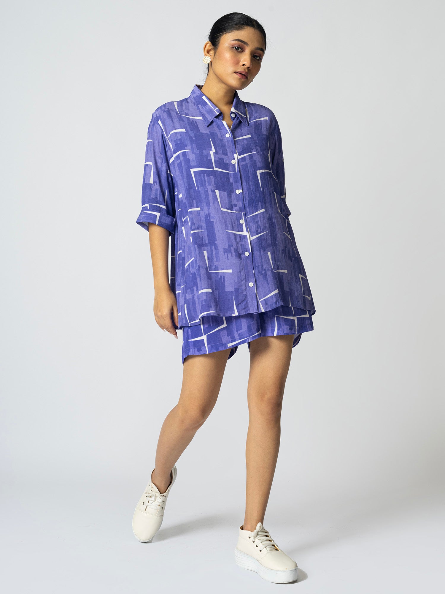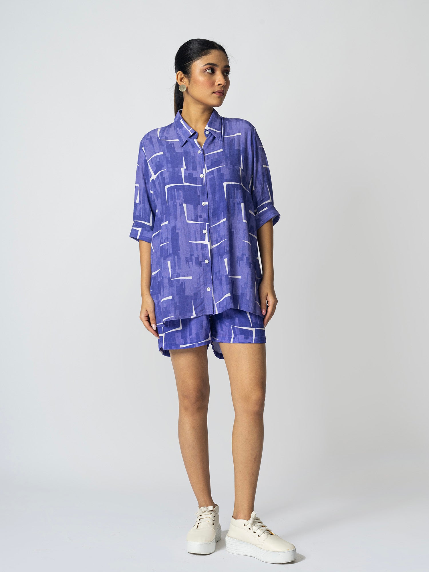 Printed co-ordinated shirt & shorts set with inner. Sold as a set of 2.