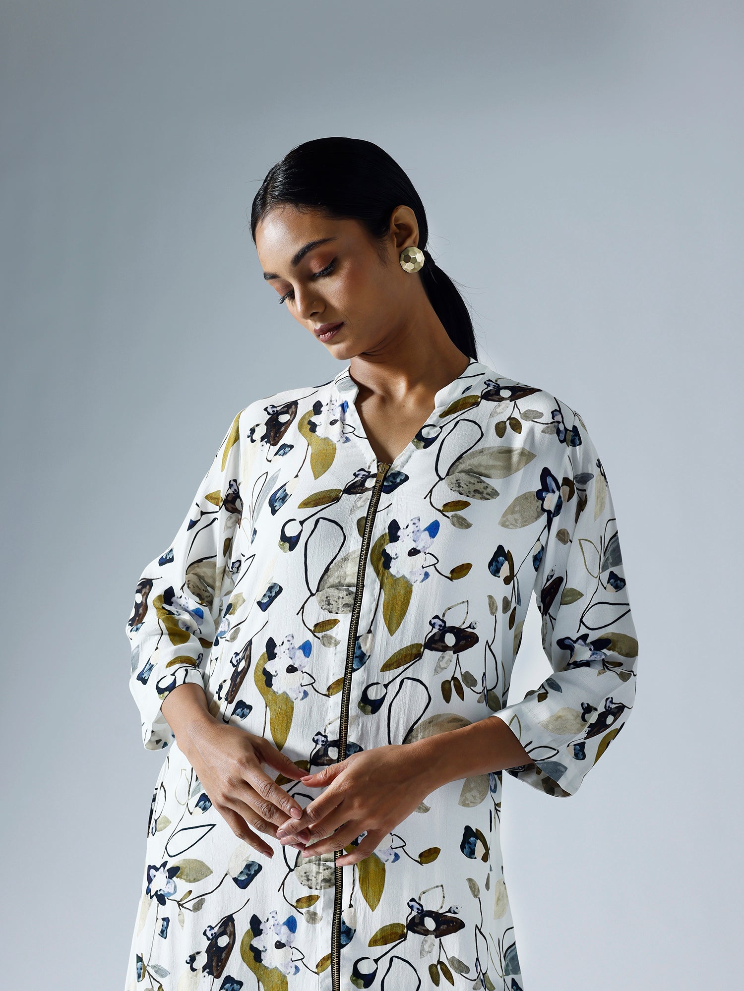 Vivid White Zipped Jacket Set With Pixelated White Pants