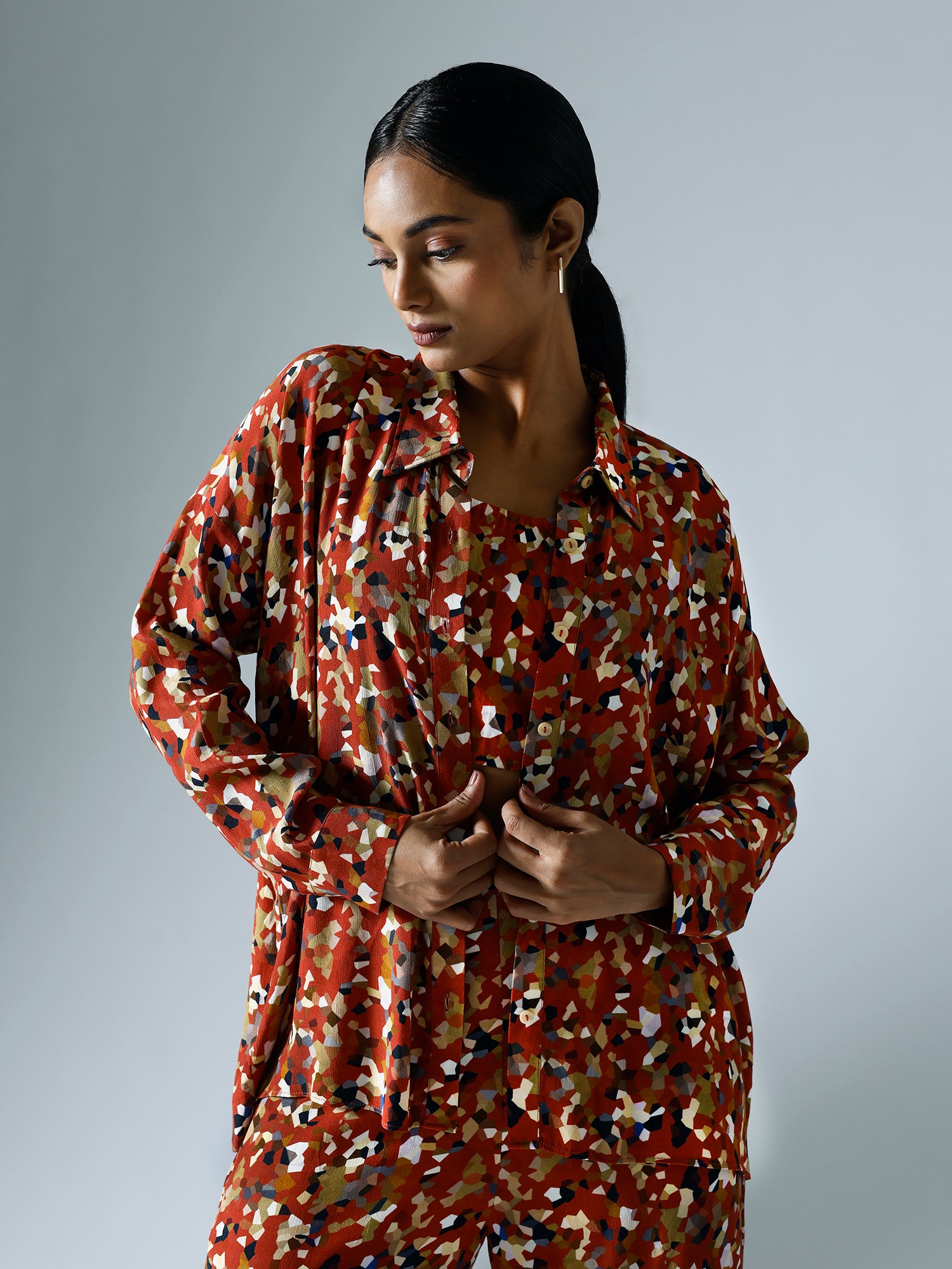 Full sleeve shirt with front buttons and cotton Inner . Pants with pocket and back elastic. Zip fly fastening with a single hook fastening on one side. Mid rise. Regular fit.