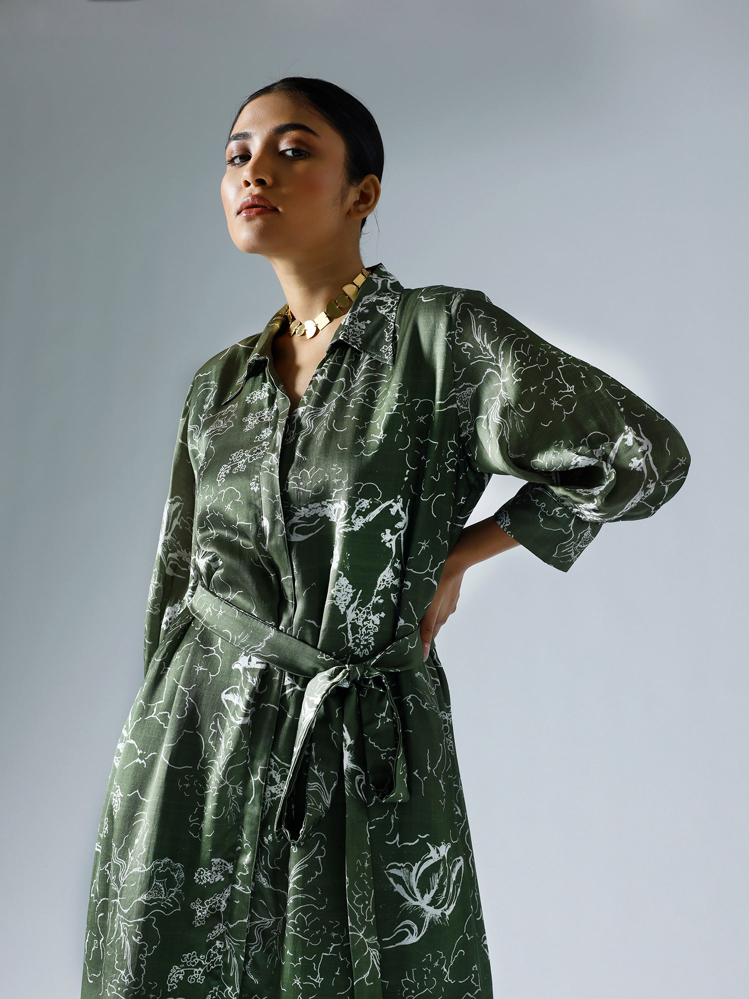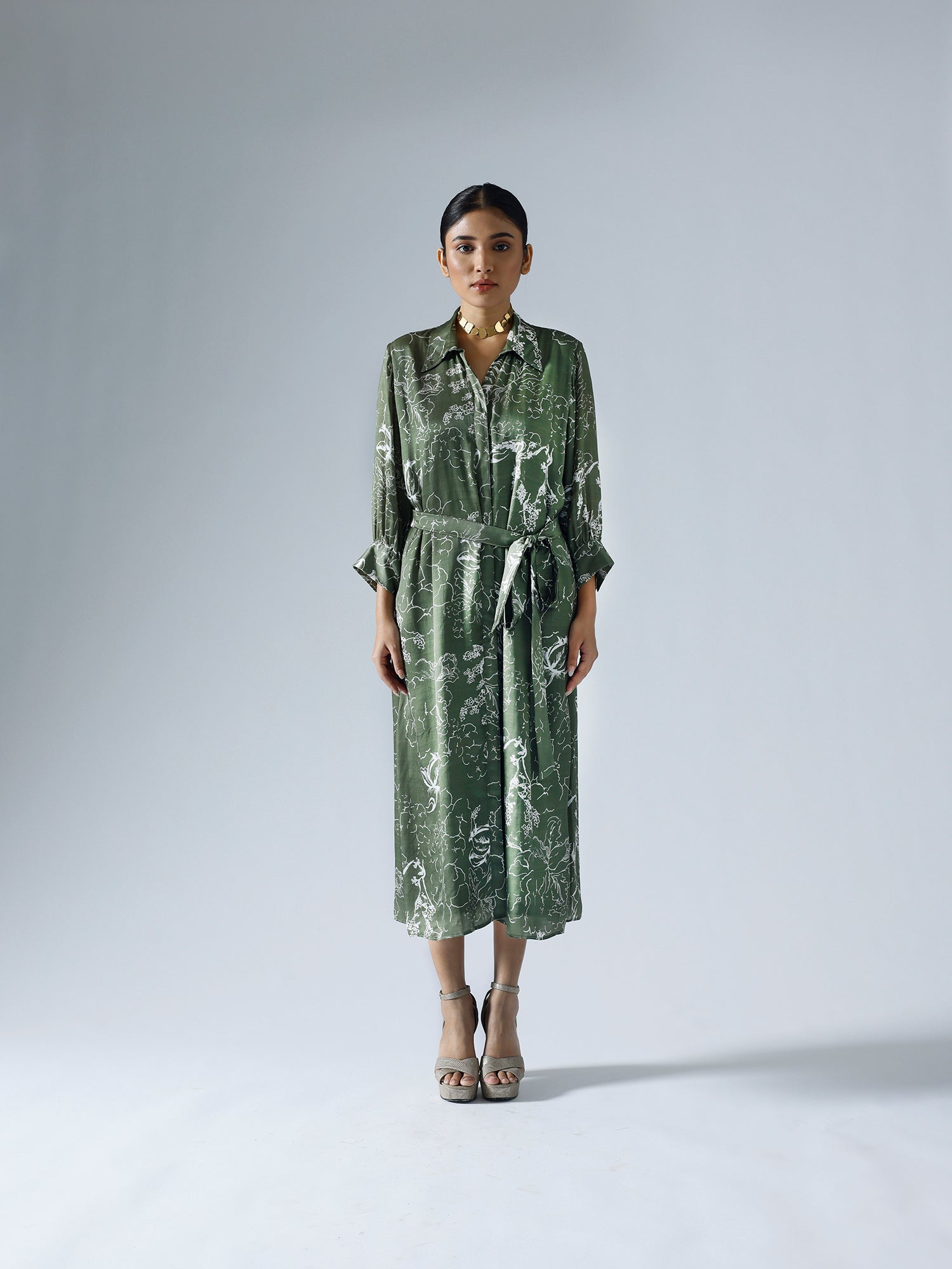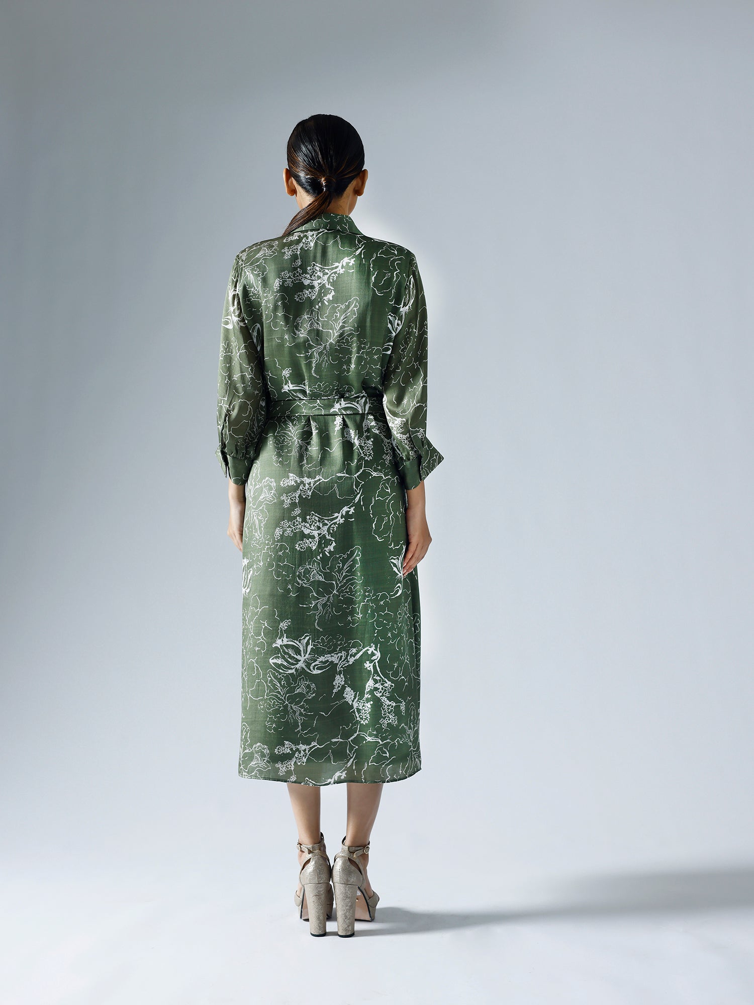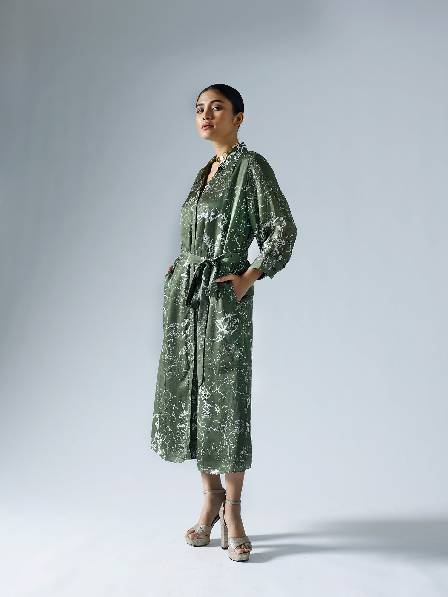 Three fourth cuffed sleeves. Front open with concealed buttons. Belt is separate. Having cotton lining. Regular fit.