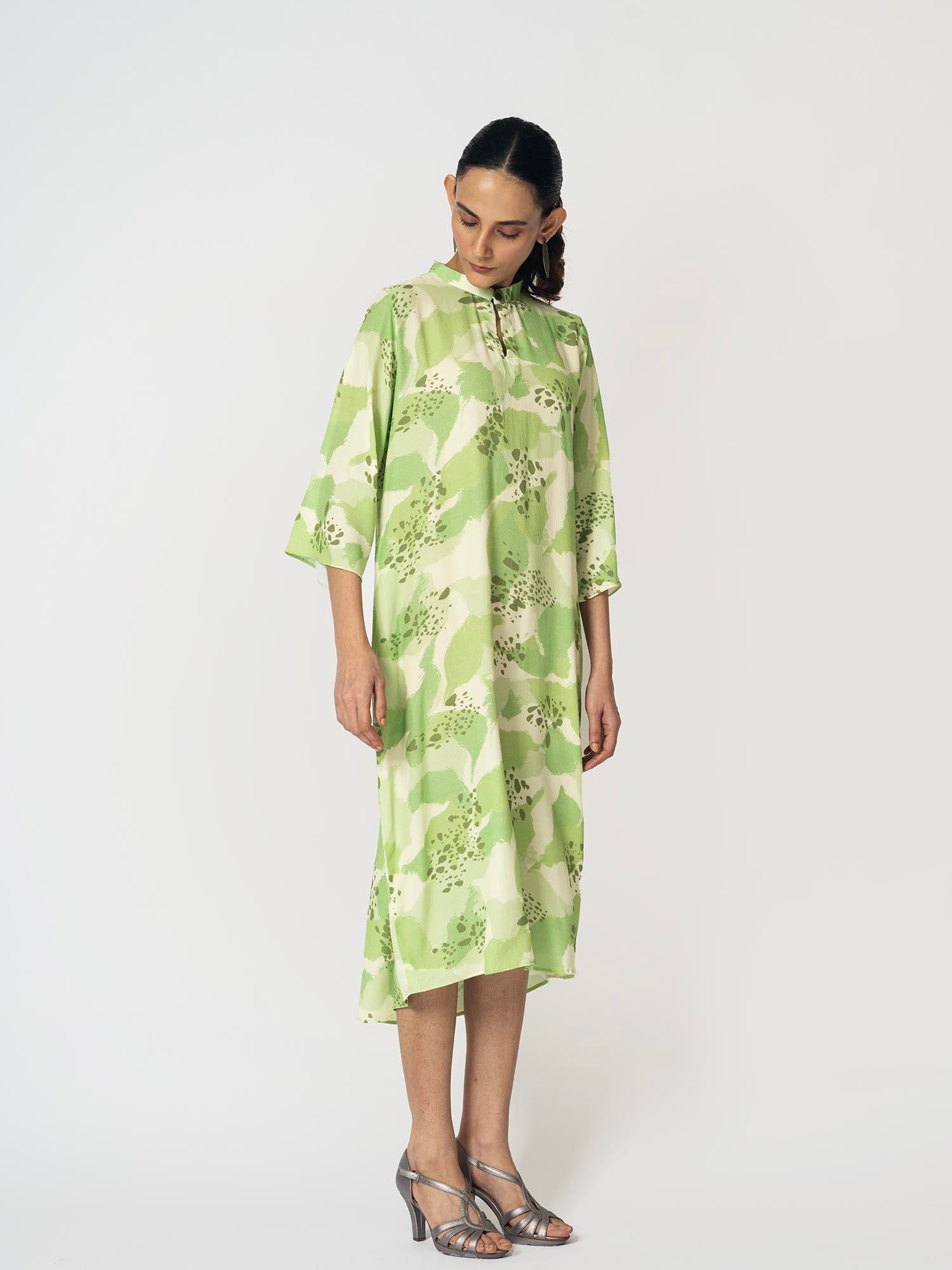 Printed high low dress with detachable scarf, and pocket. Sold as one set.