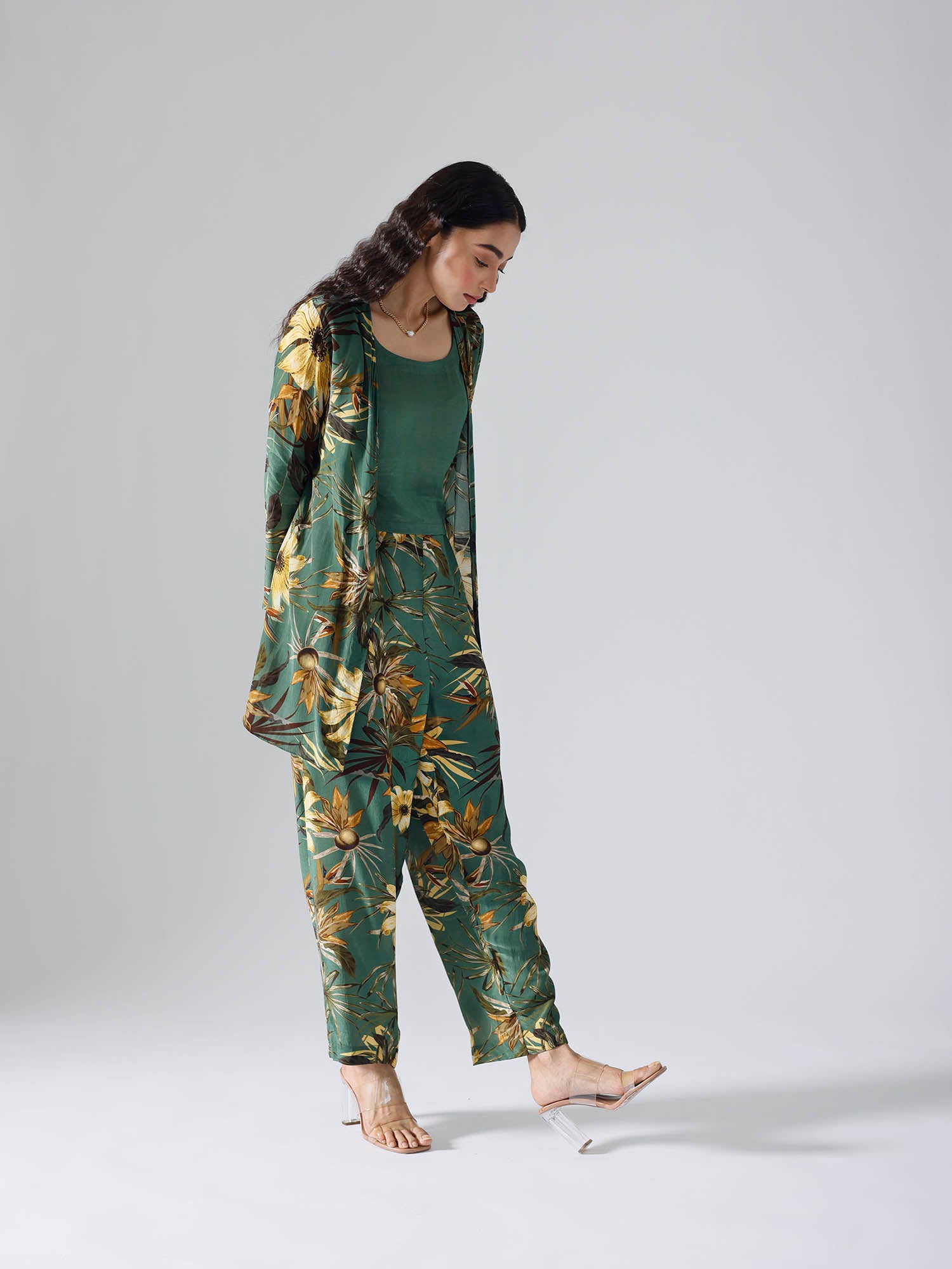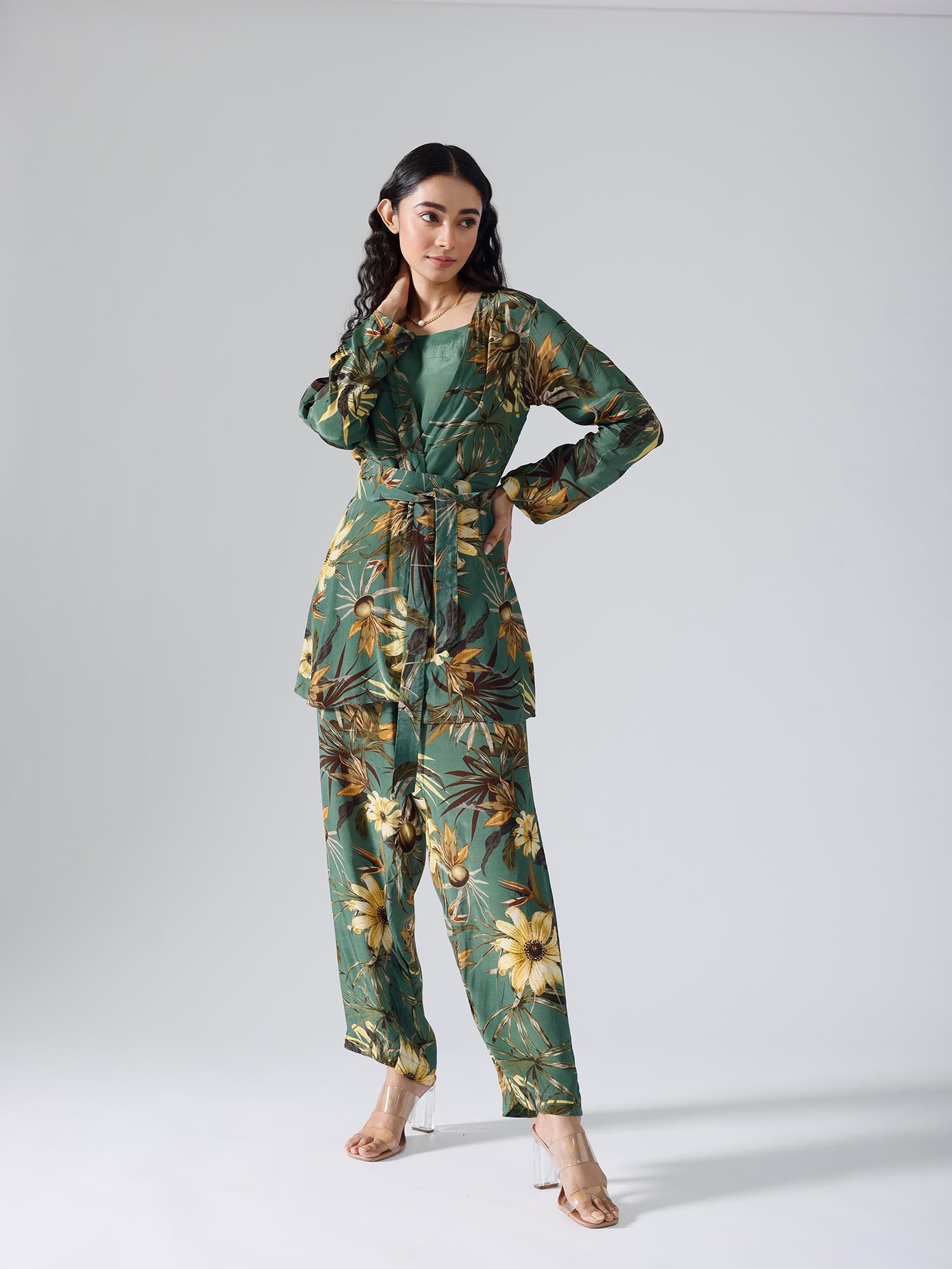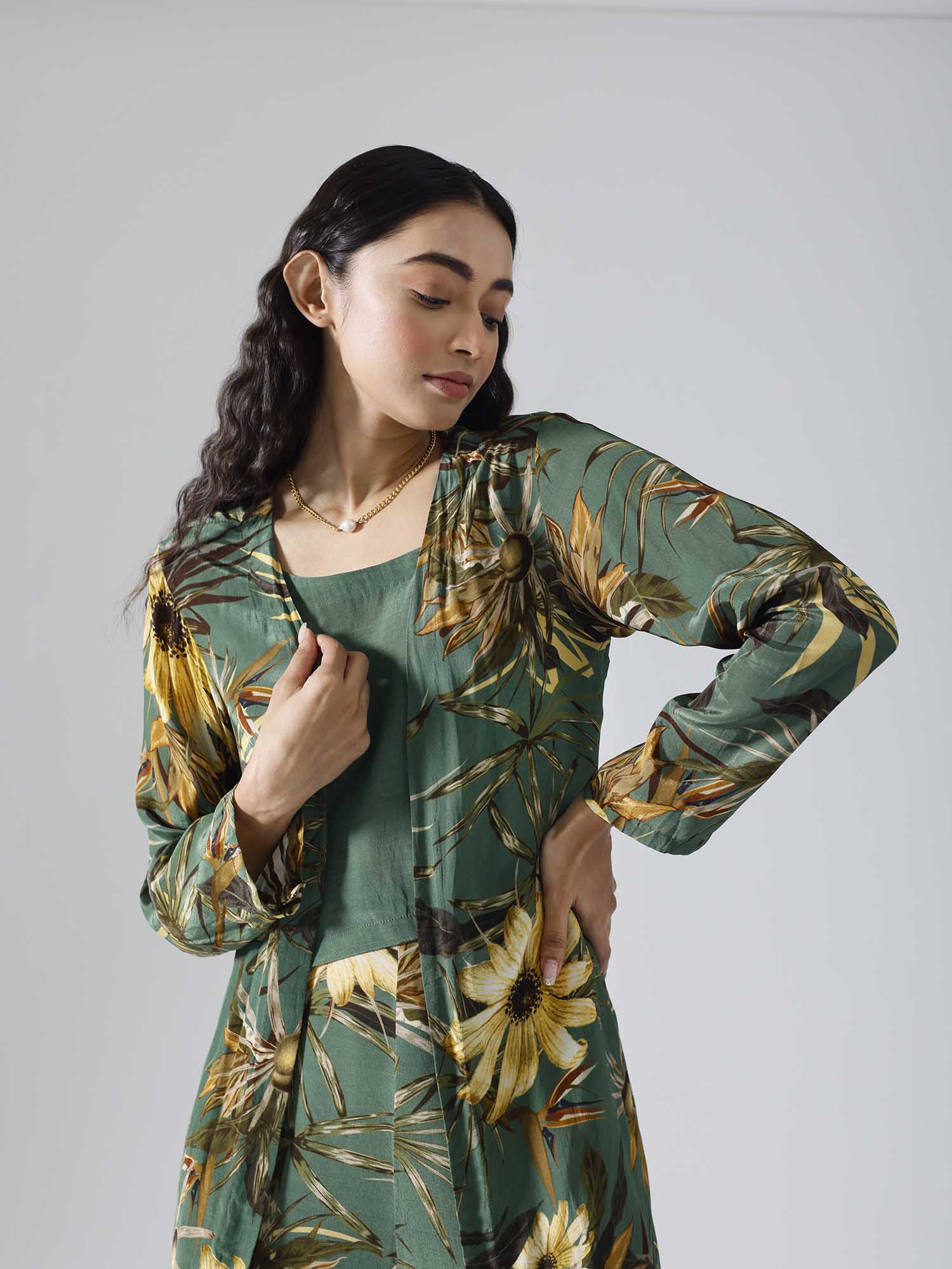 Printed co-ordinated set. Sold as a set of 3. Full sleeve jacket. Inner is sleeveless.