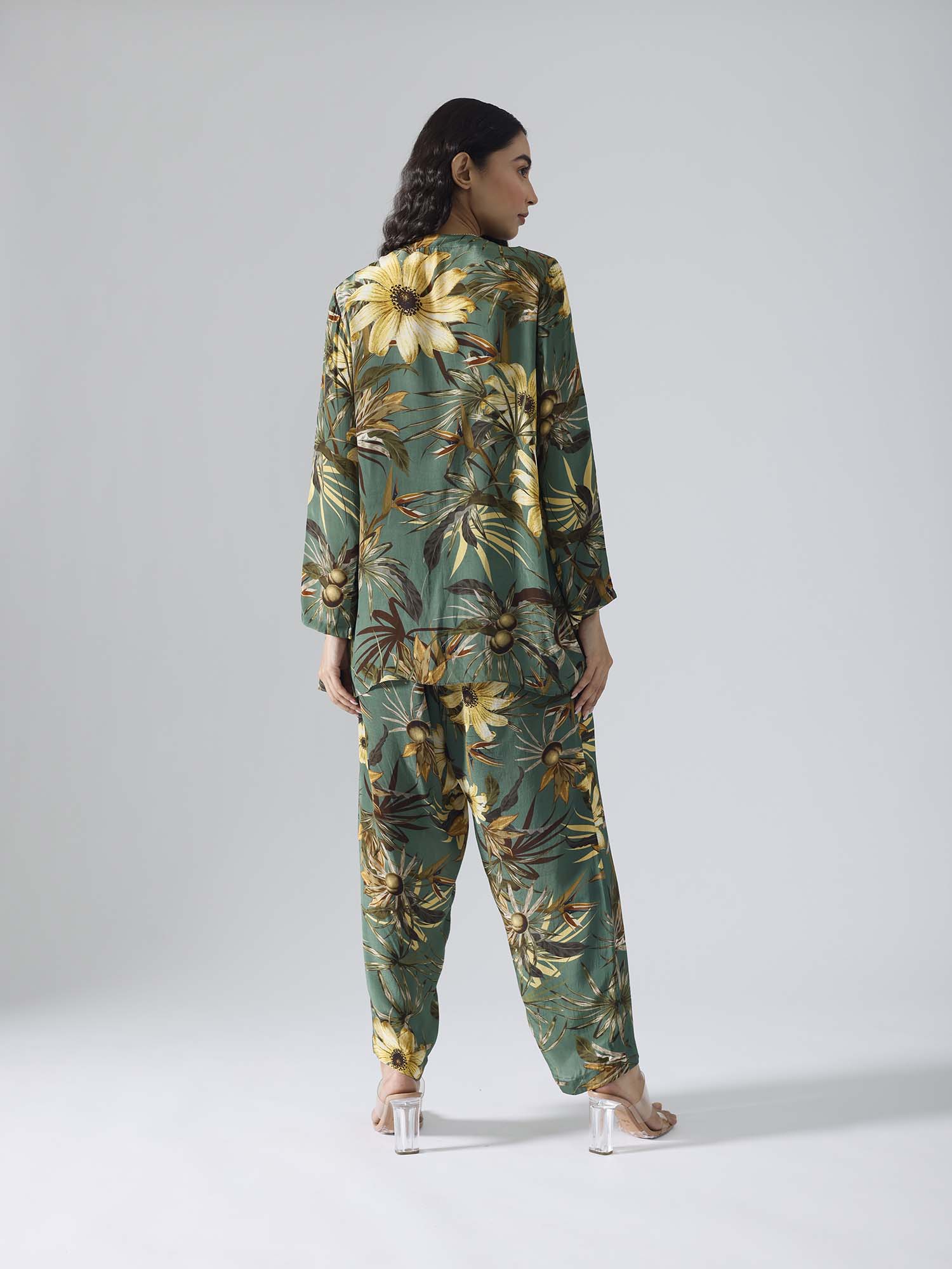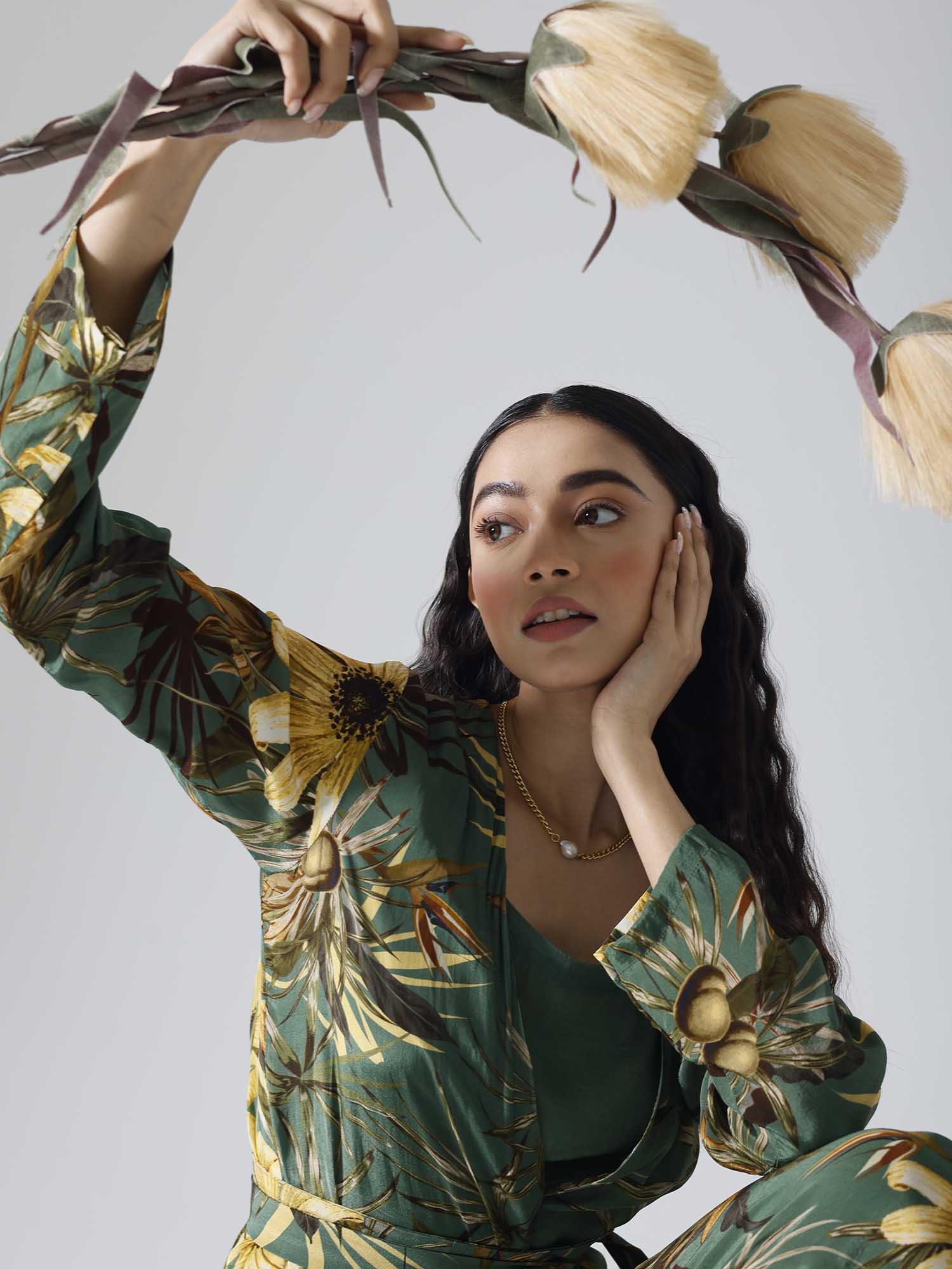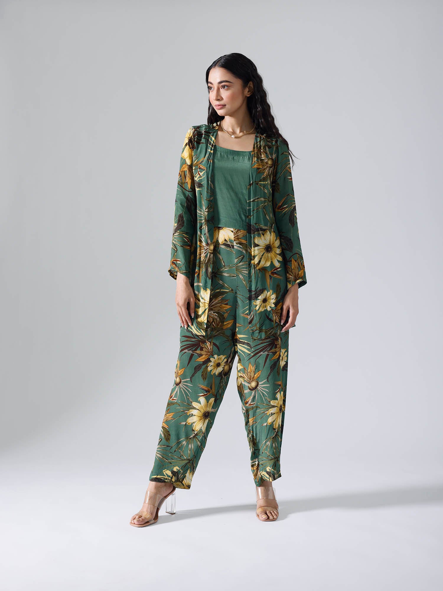 Printed co-ordinated set. Sold as a set of 3. Full sleeve jacket. Inner is sleeveless.