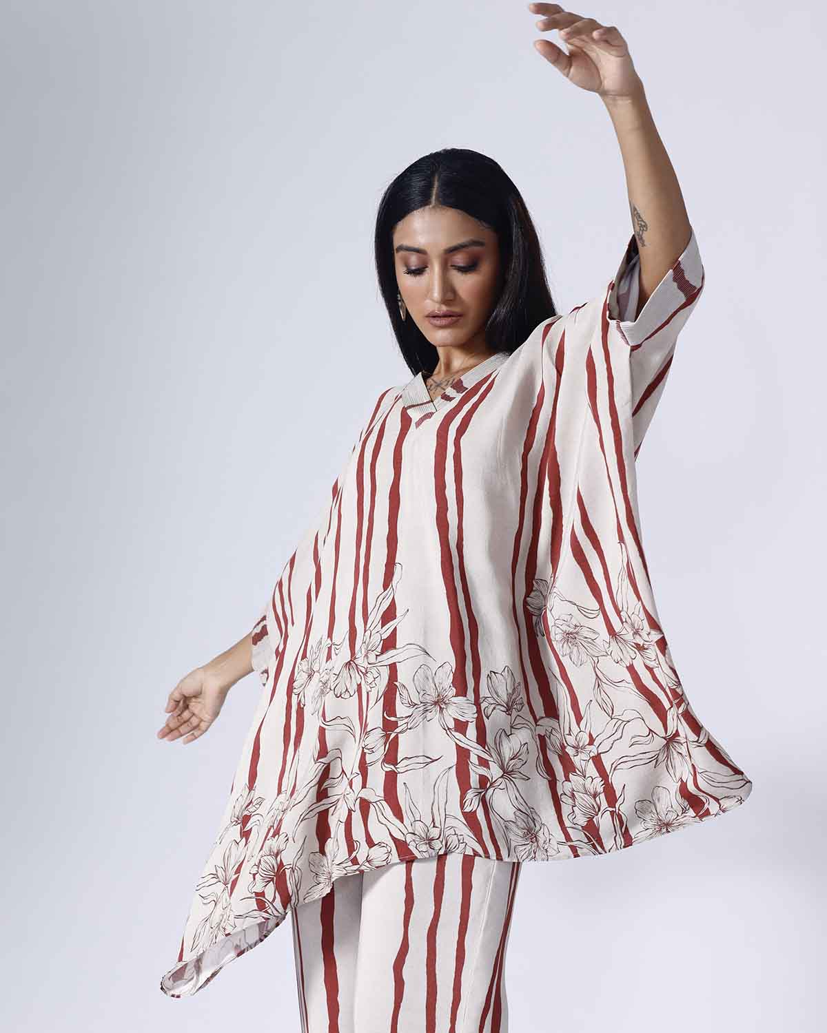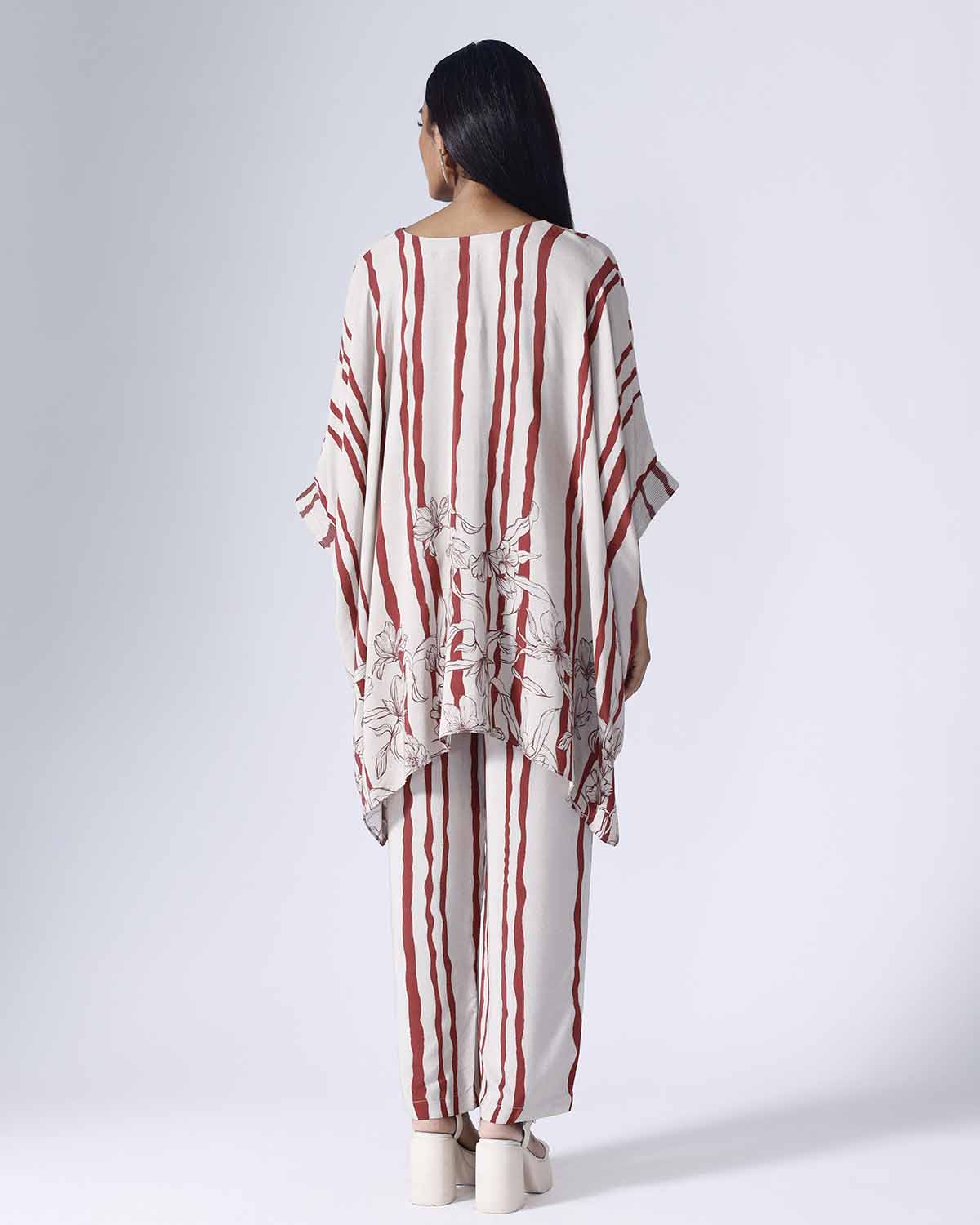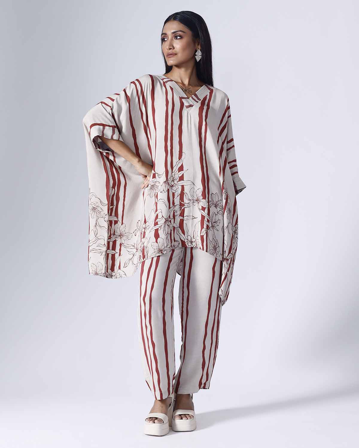 FLORAL STRIPE SHORT KAFTAAN SET