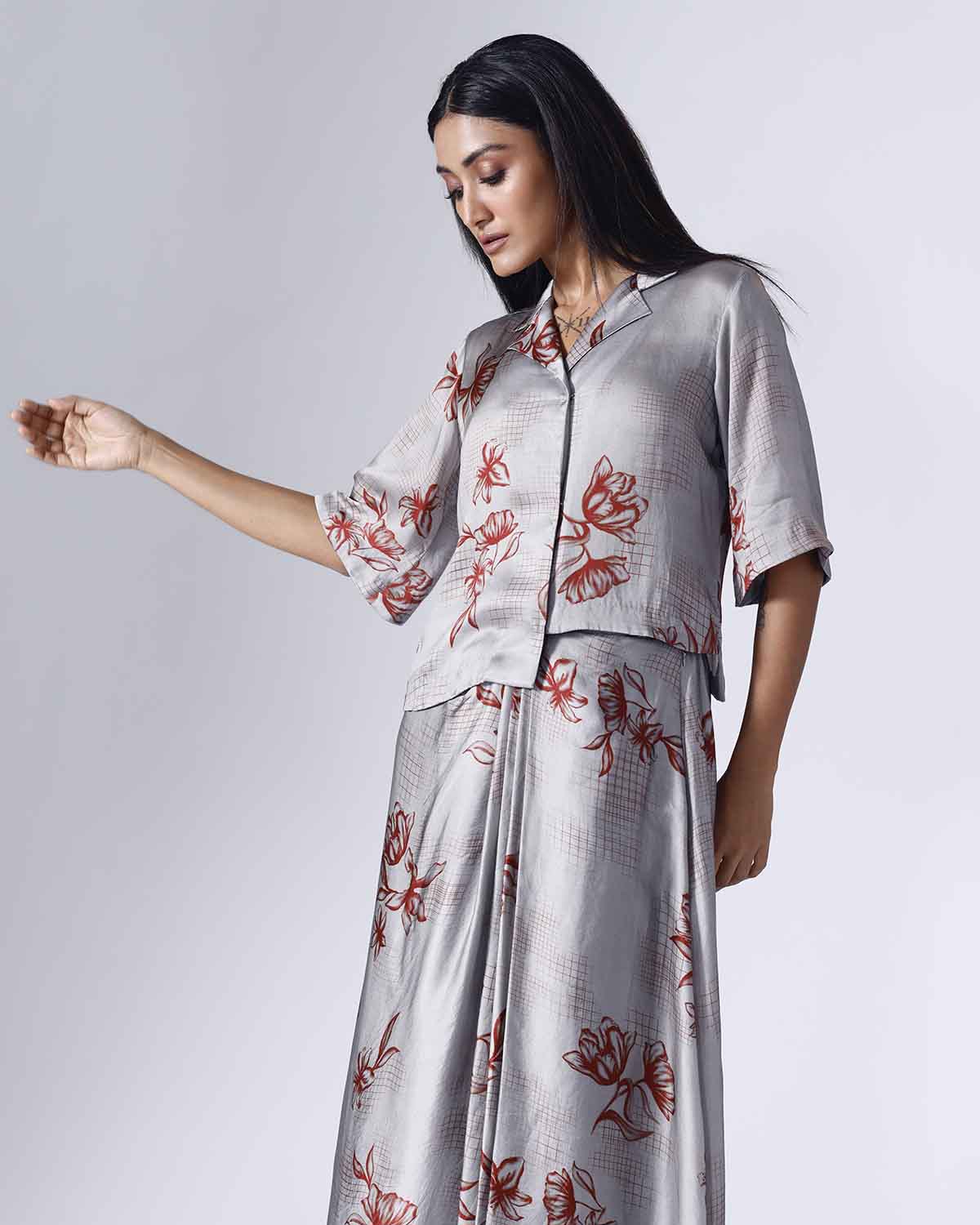 FLORAL GRID SKIRT SET