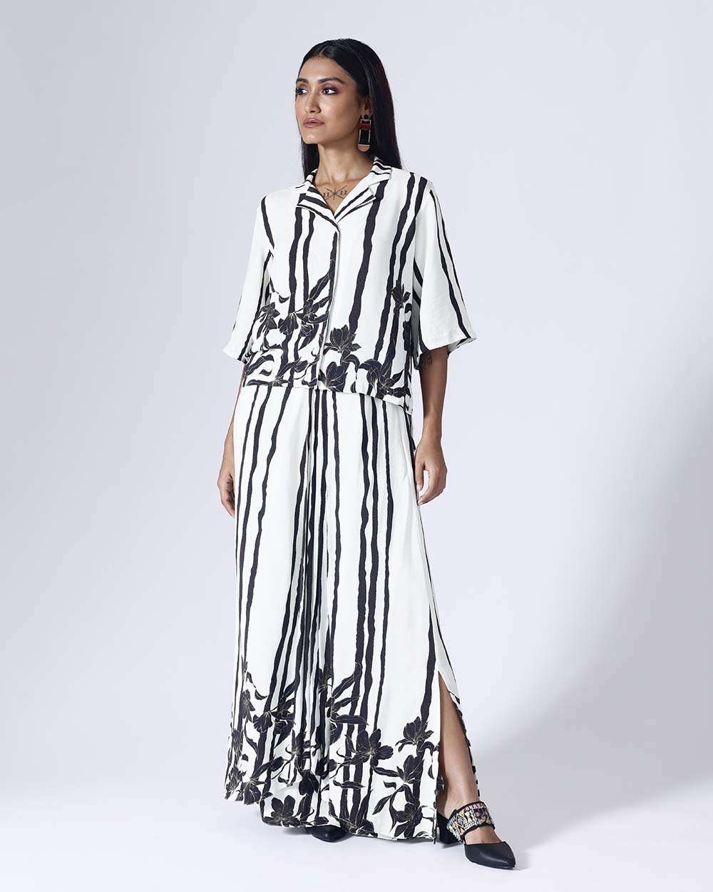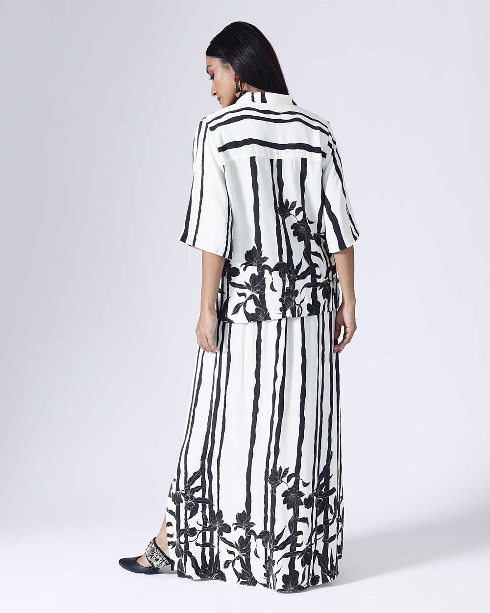 FLORAL STRIPE BW SKIRT SET