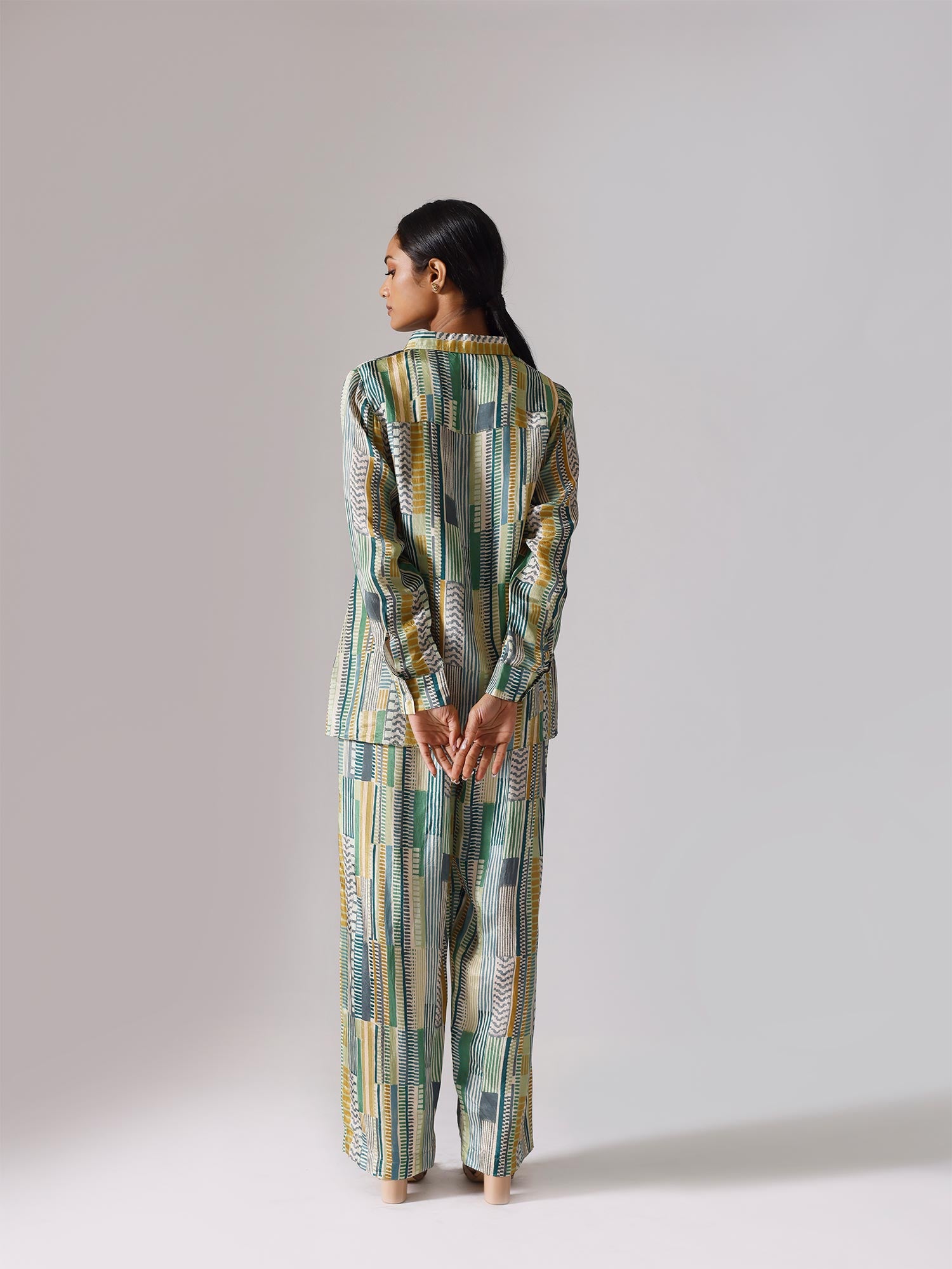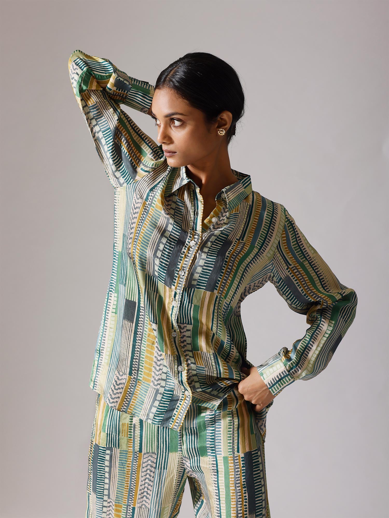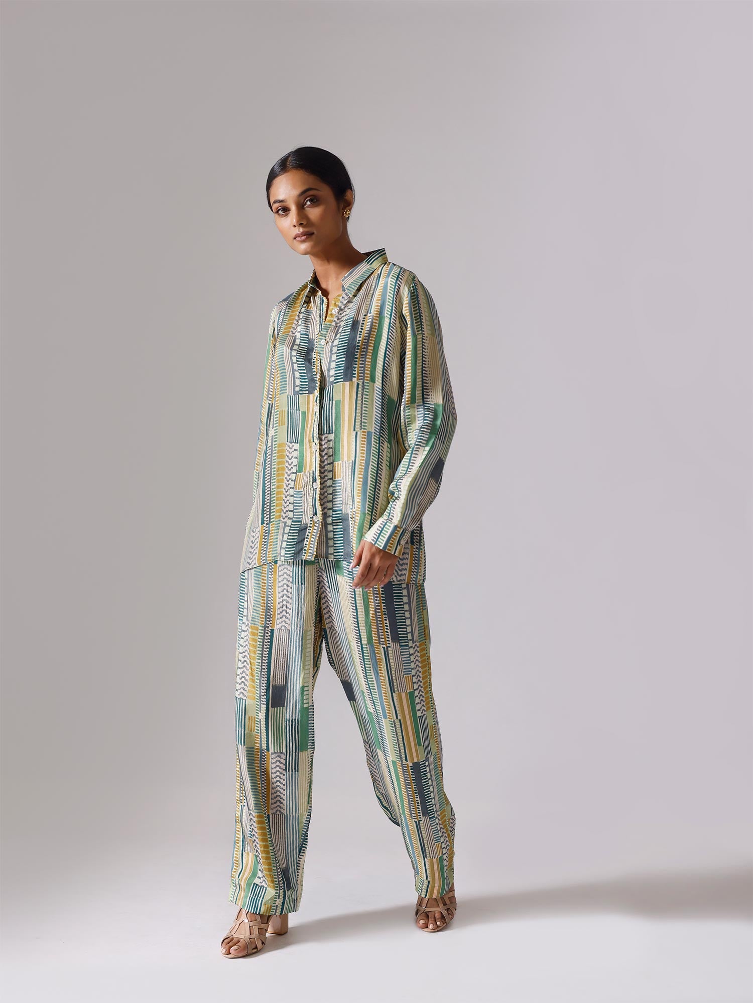 Printed co-ordinated set. Sold as a set of 2. Full sleeve shirt with front buttons.