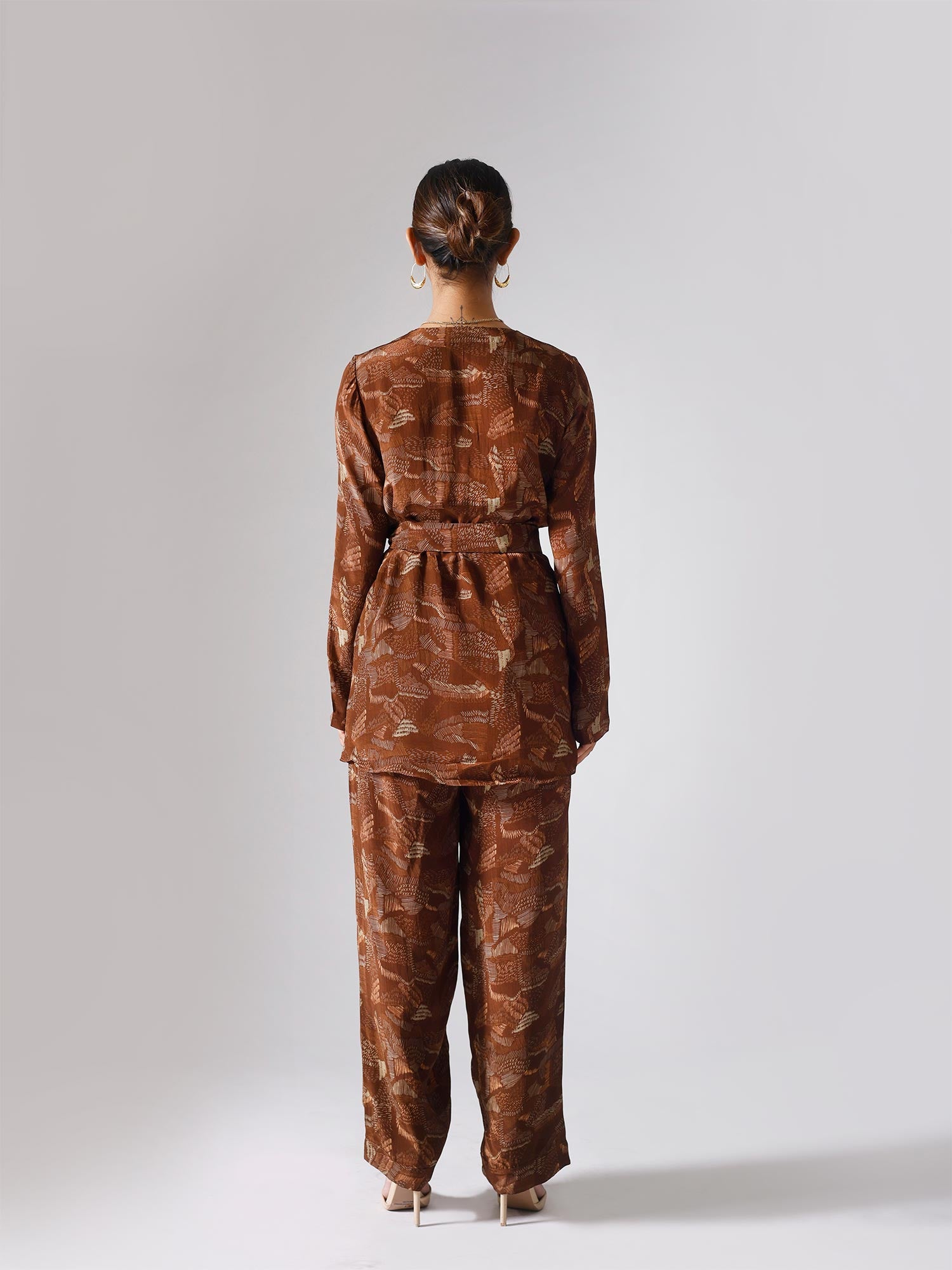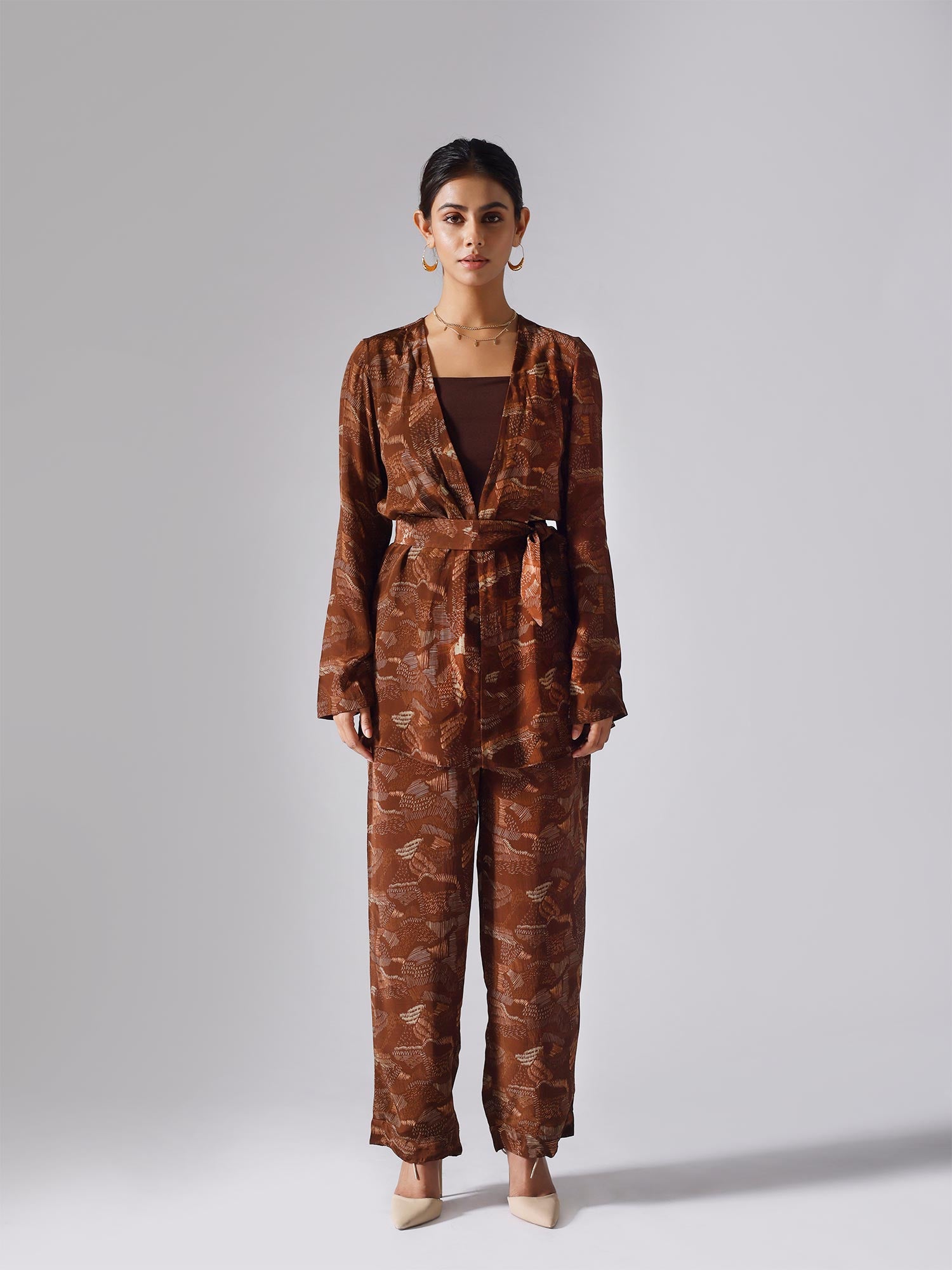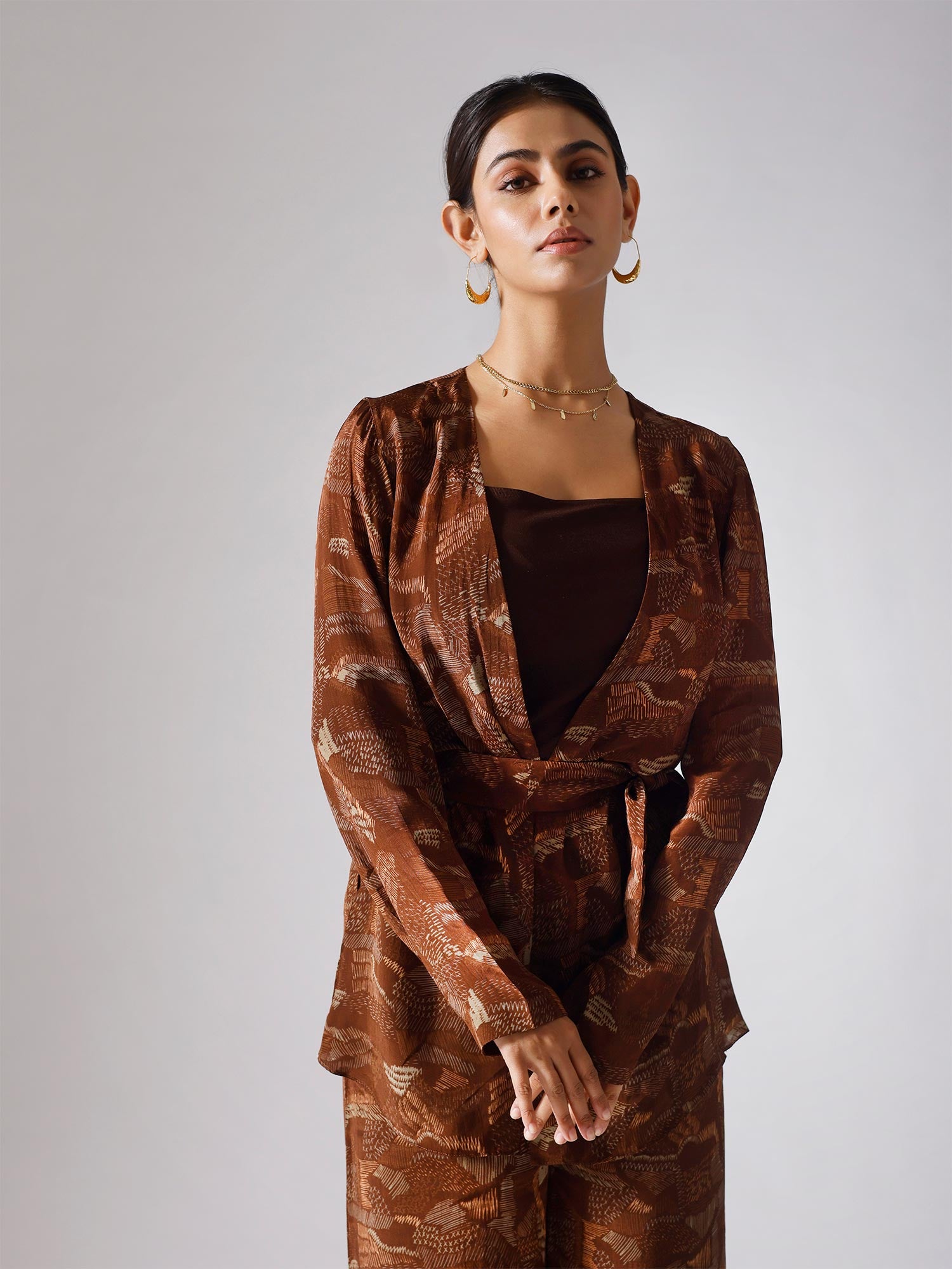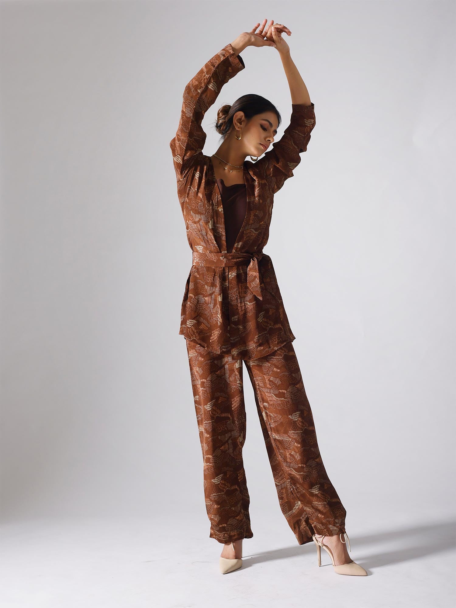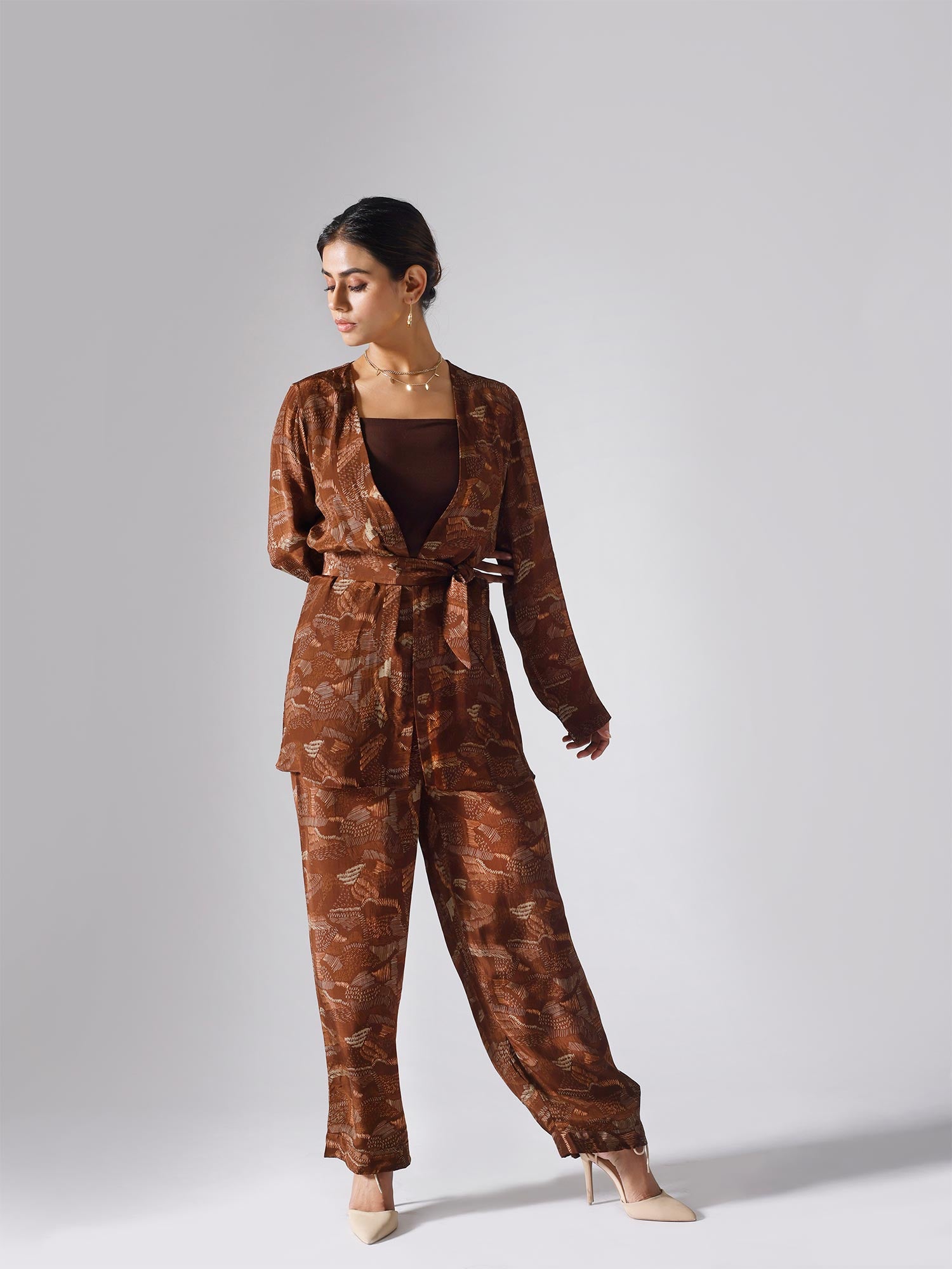 Printed co-ordinated set. Sold as a set of 3. Full sleeve jacket. Inner is sleeveless.