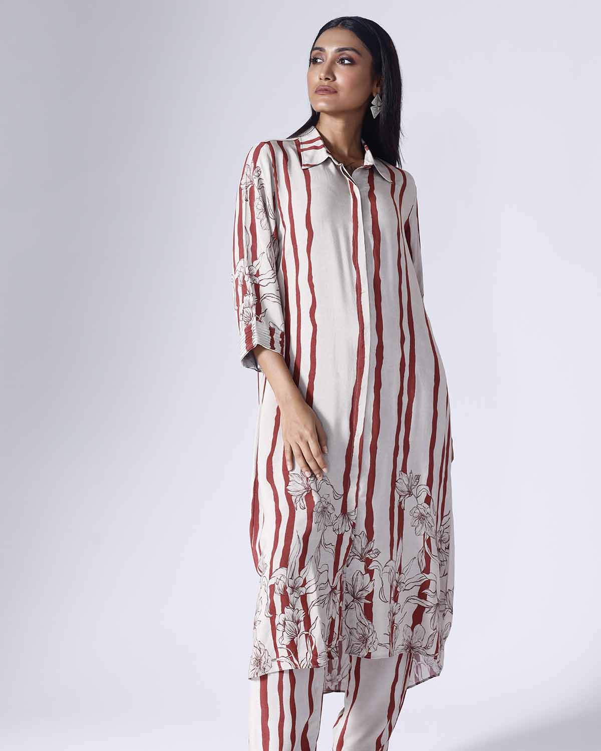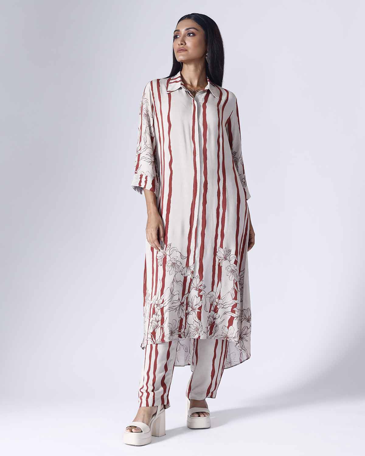 FLORAL STRIPE LONG COORD SET