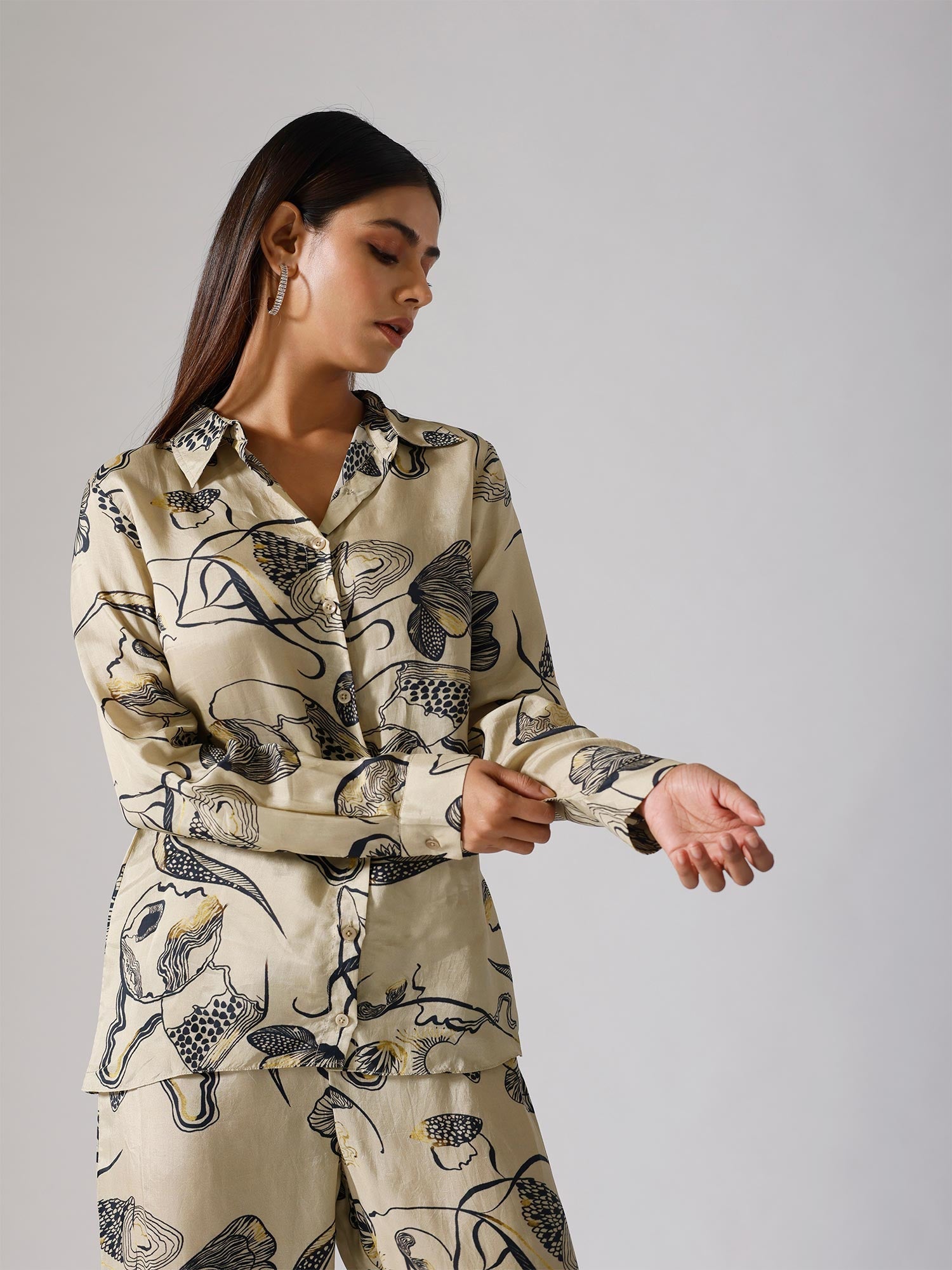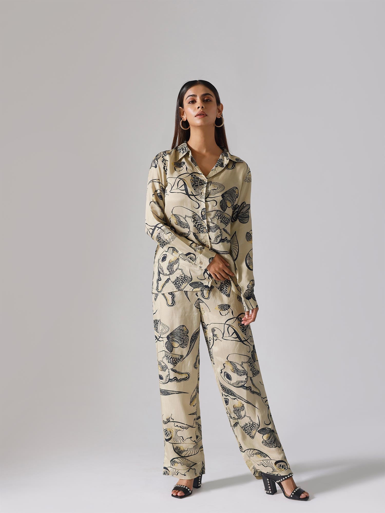 Printed co-ordinated set. Sold as a set of 2. Full sleeve shirt with front buttons.