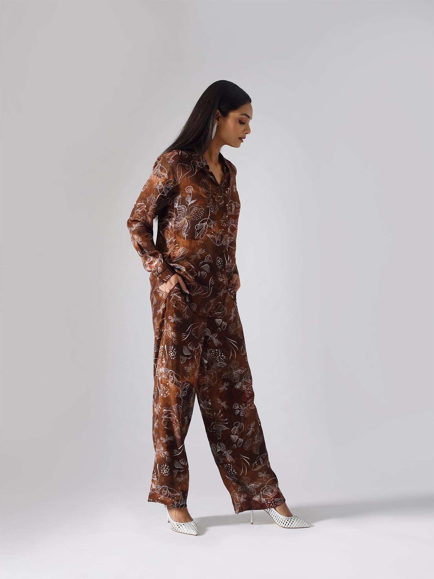 Printed co-ordinated set. Sold as a set of 2. Full sleeve shirt with front buttons.