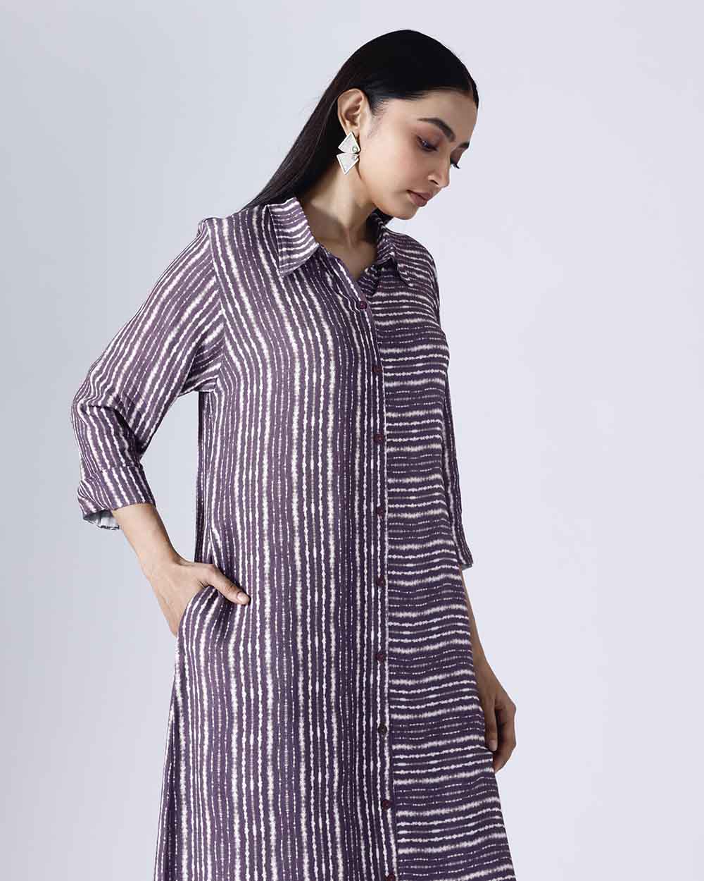 SHIBORI PLUM LONG DRESS