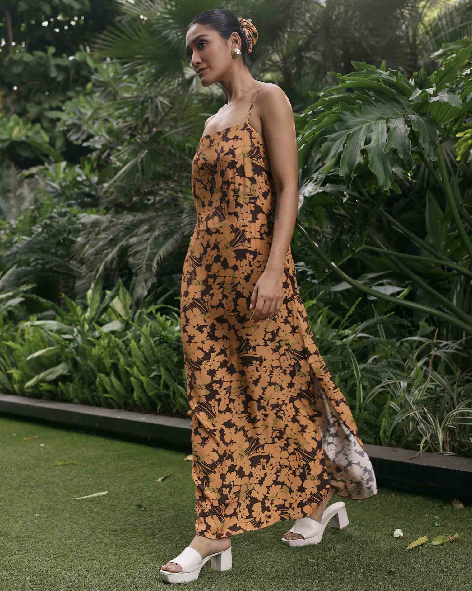 Long printed dress. Sold as one set. Adjustable straps that sits on shoulder perfectly. Slit on both sides.