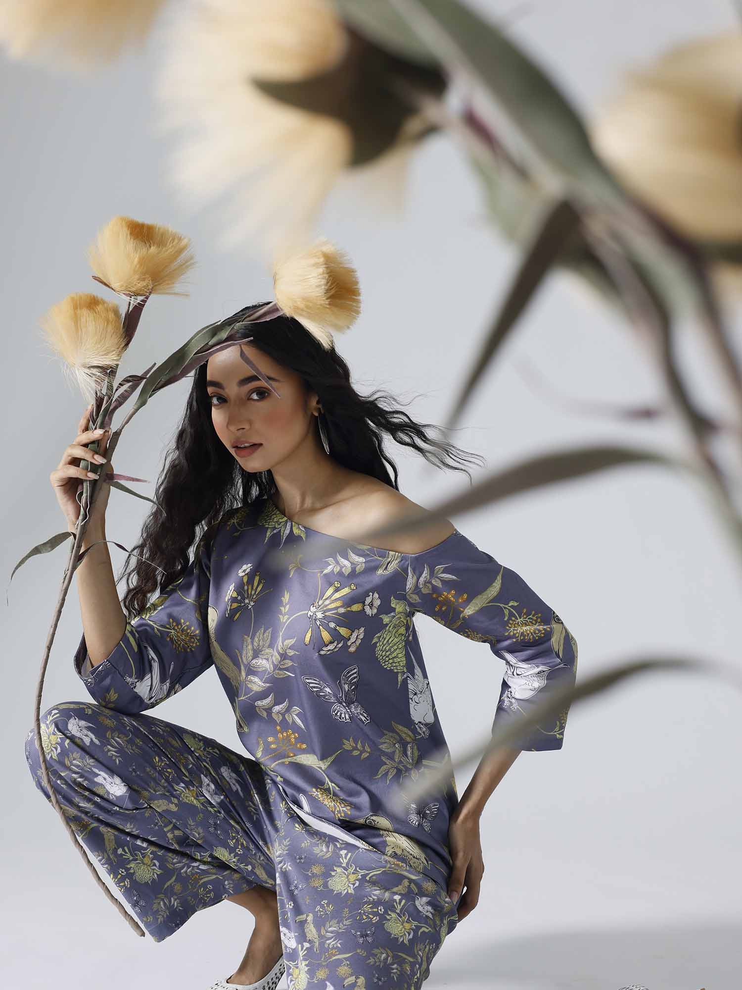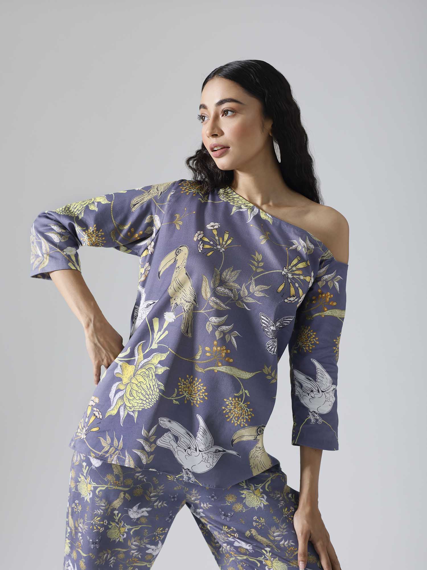 Printed drop shoulder Top. Sold as a single piece. Three fourth sleeve top.