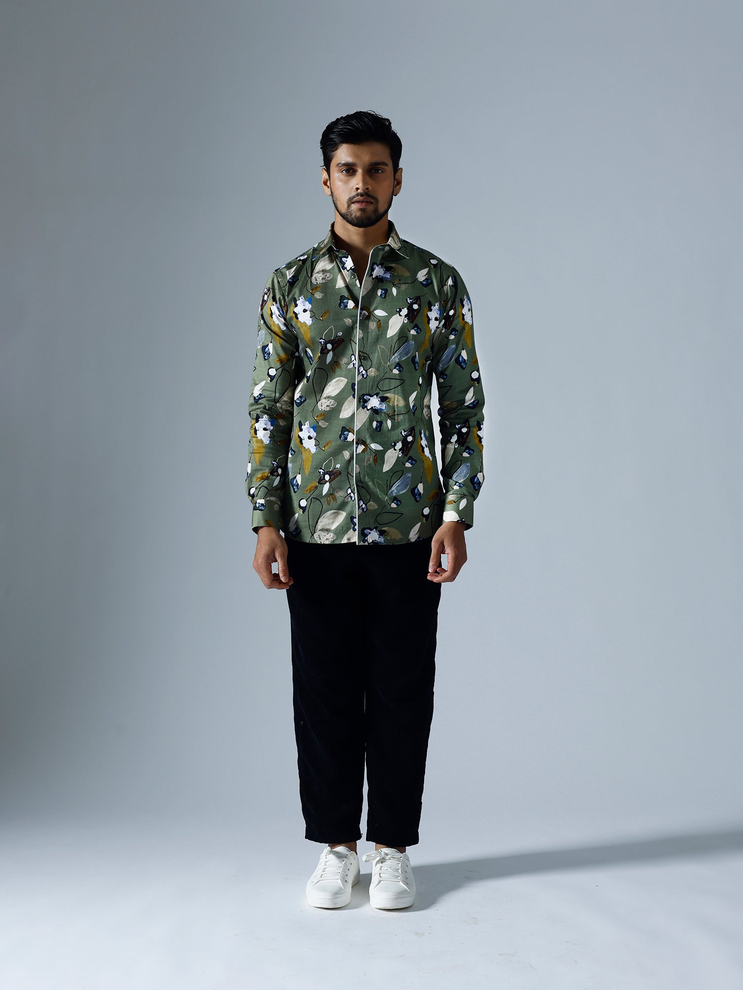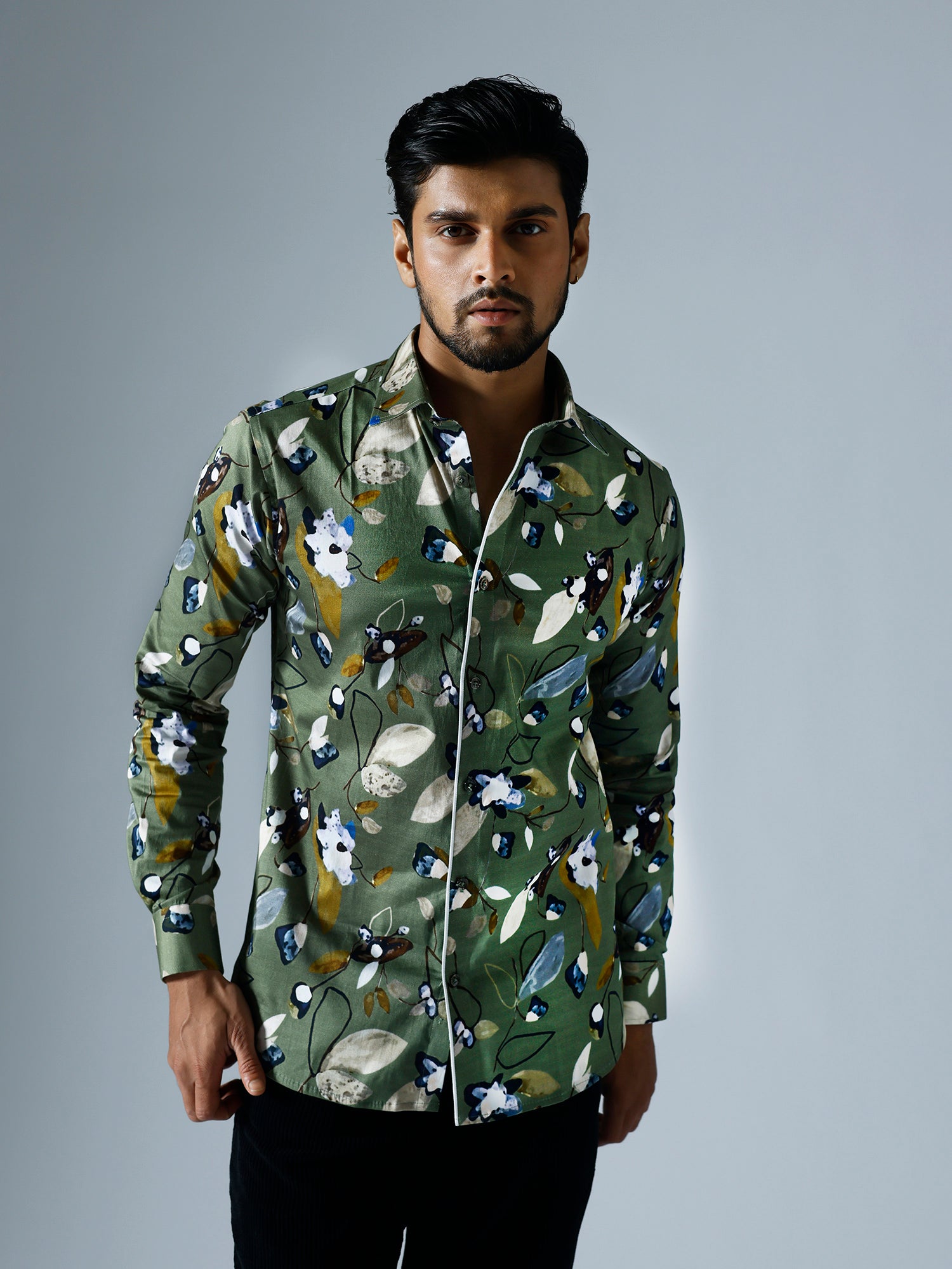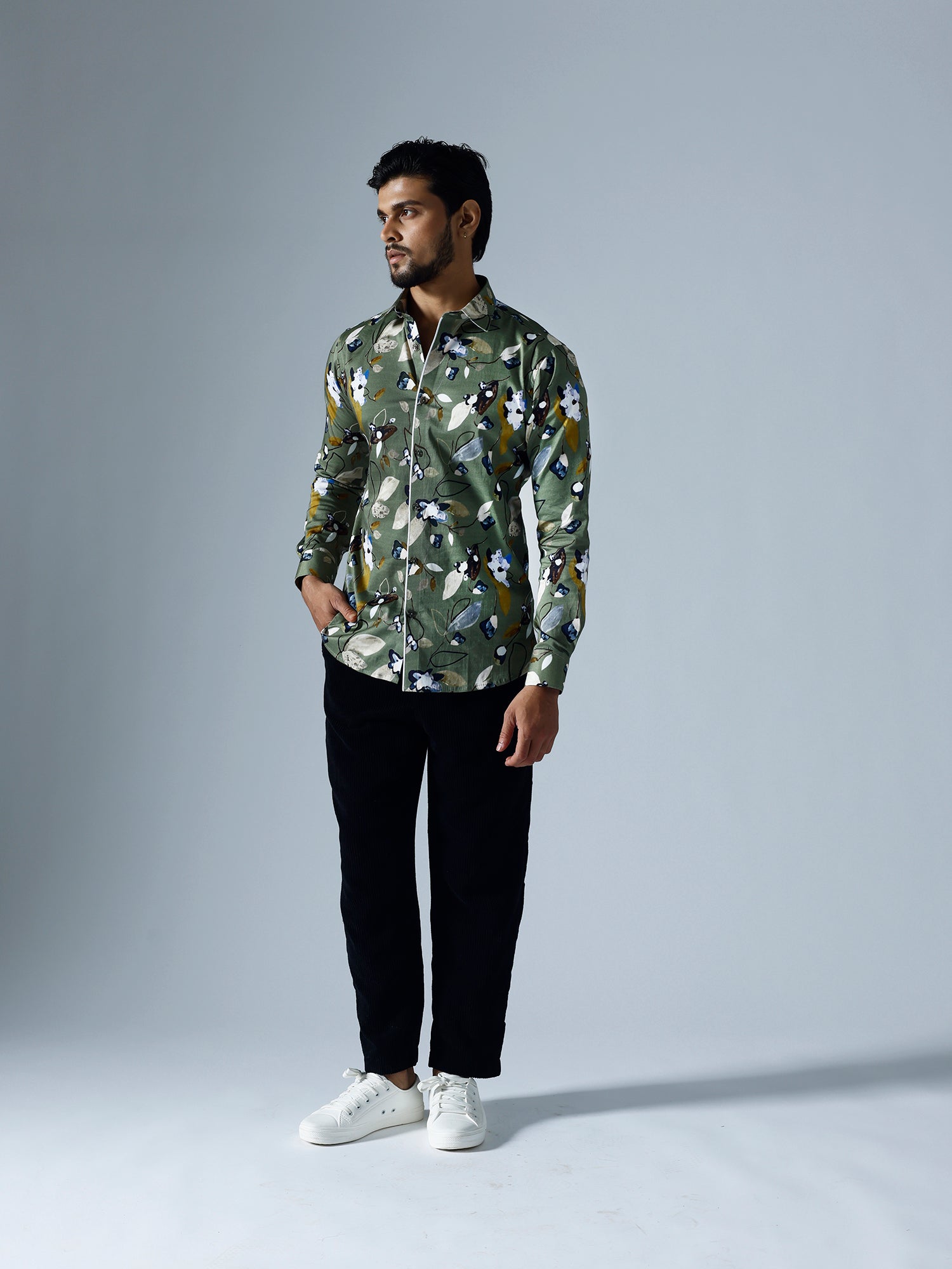 Printed Full sleeve Shirt with button up cuff and a smart white highlighted design feature at the button up panel in the front.