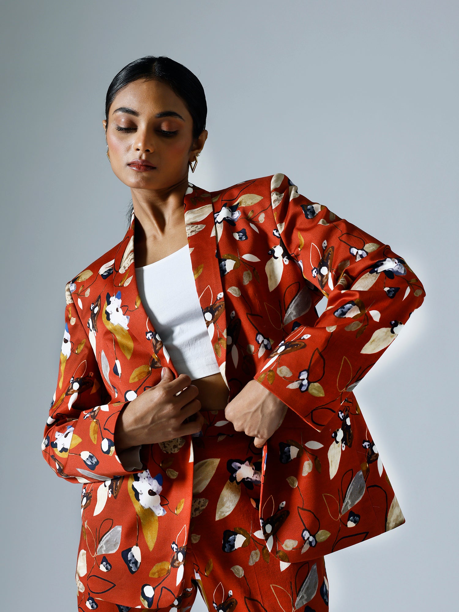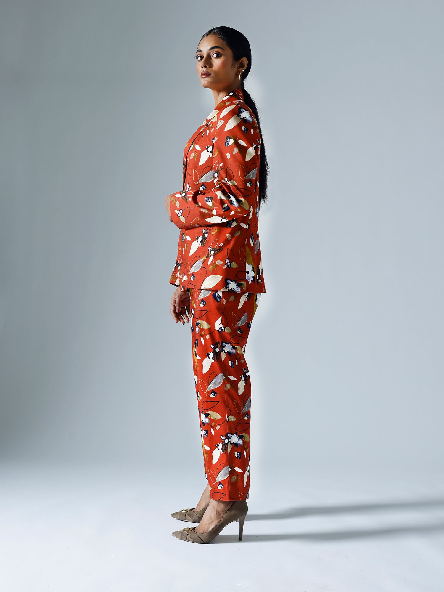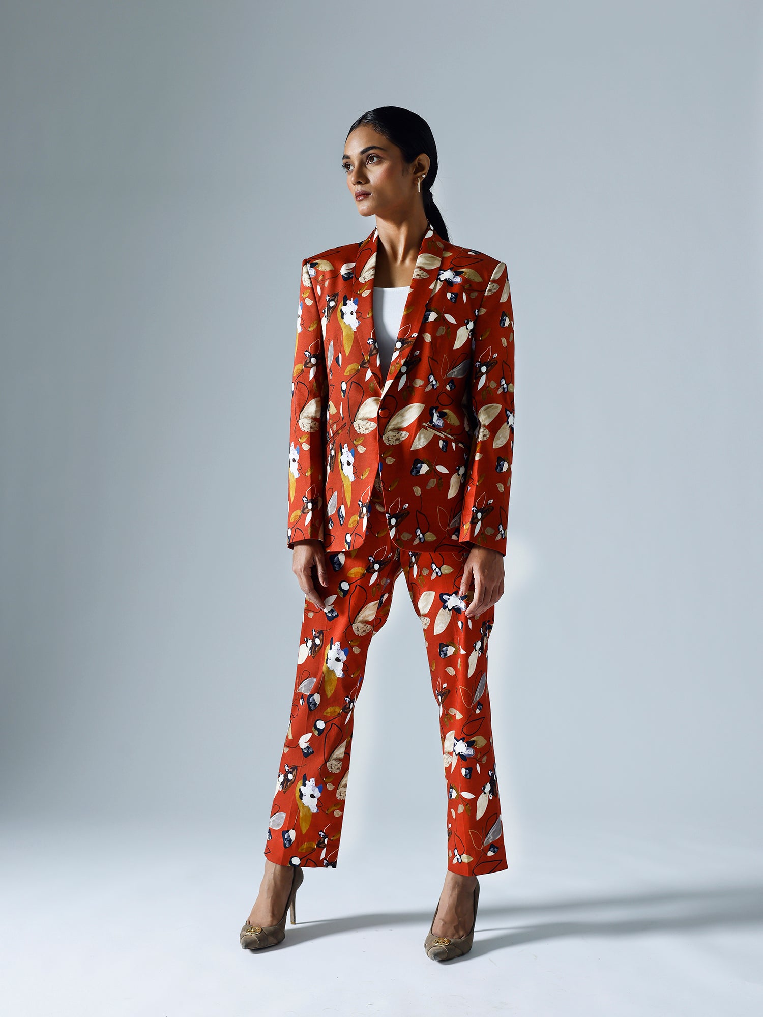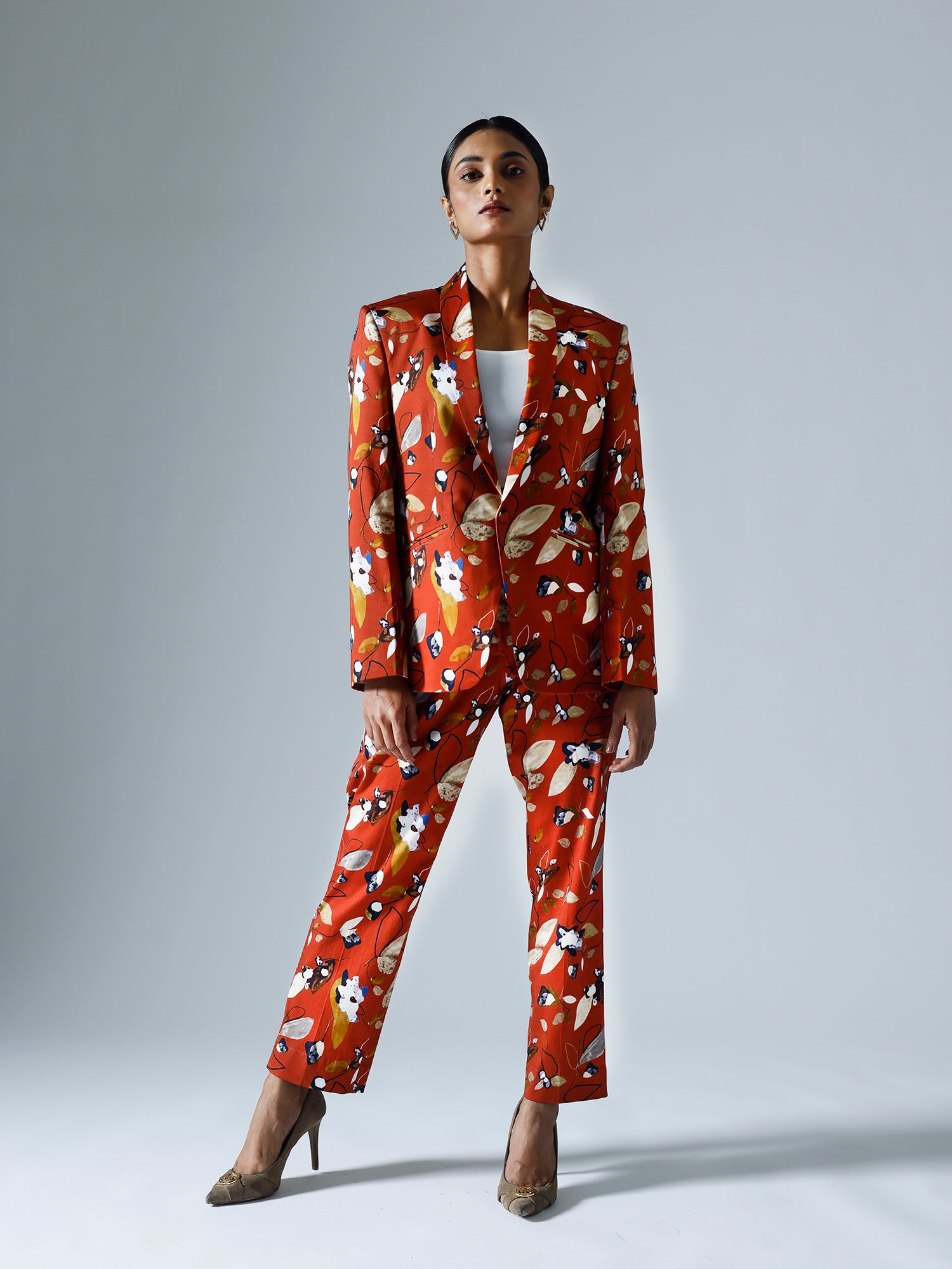 Printed pant suit.