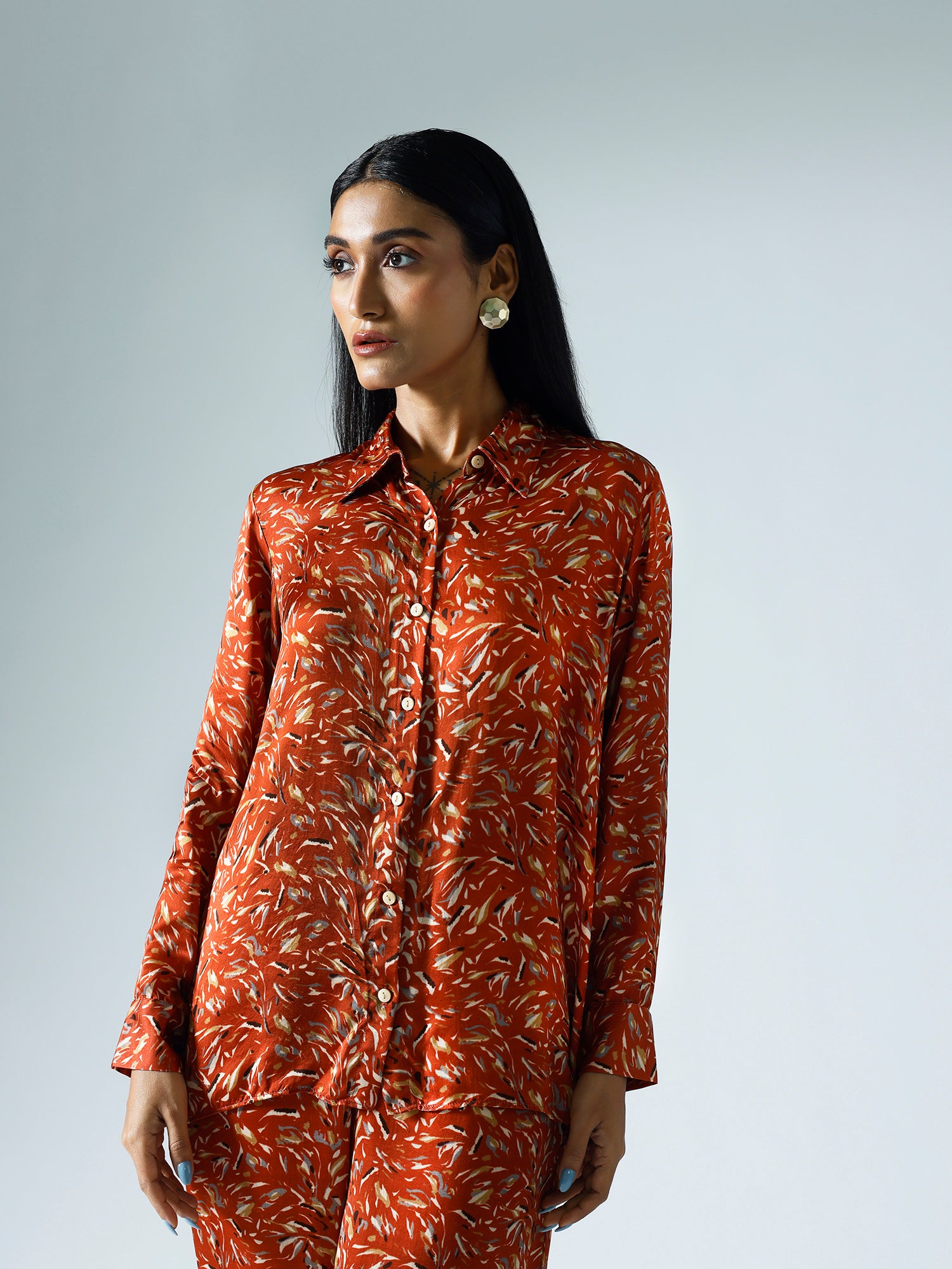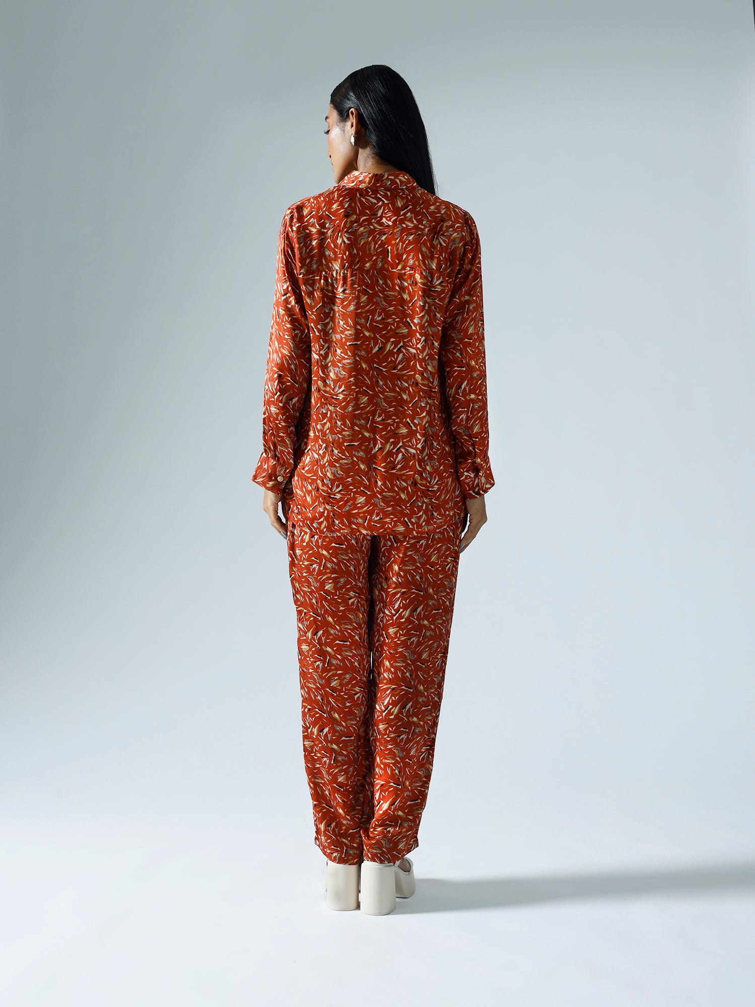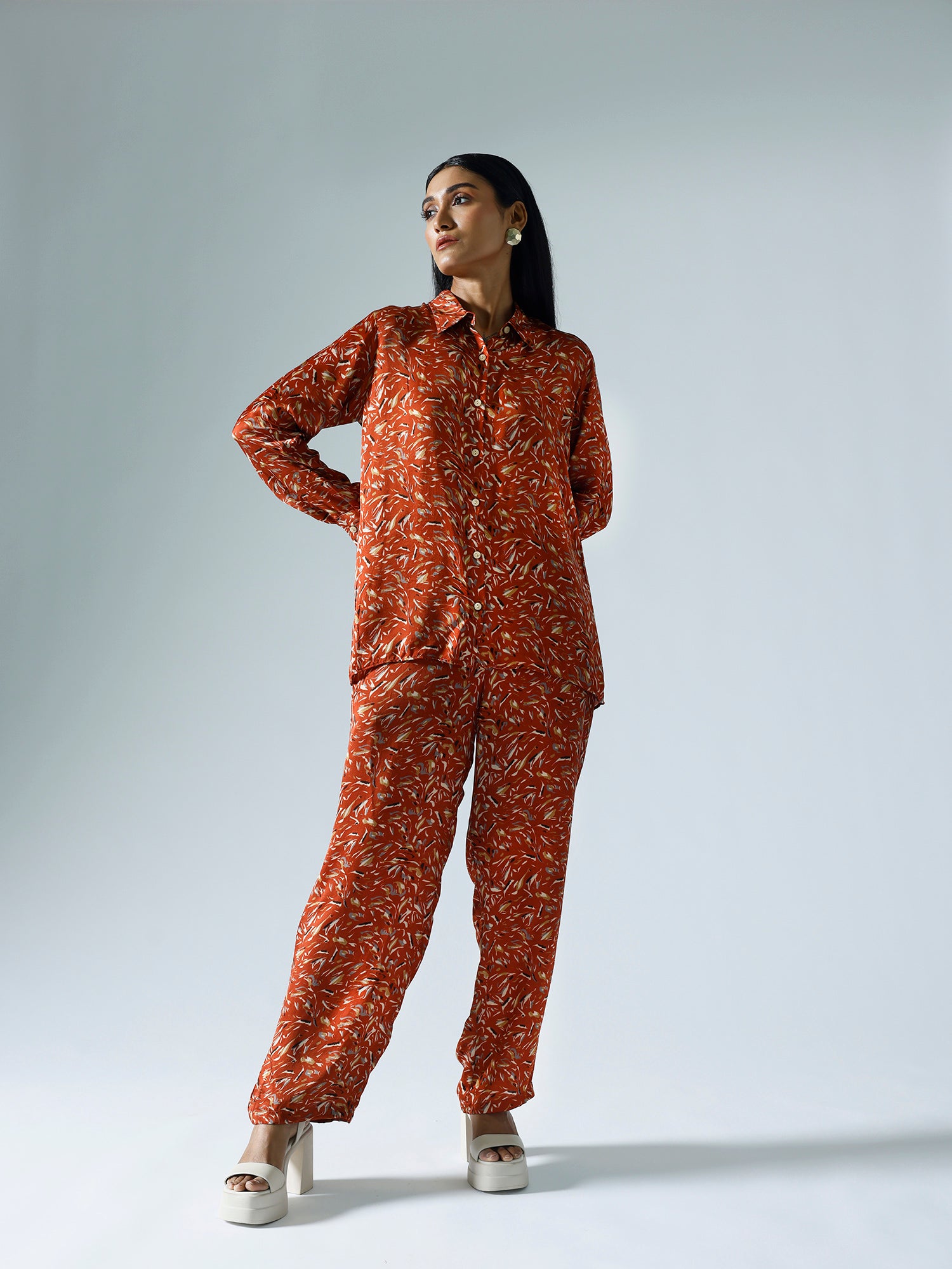 Full sleeve shirt with front buttons. Pants with pocket and back elastic. Zip fly fastening with a single hook fastening on one side. Mid rise. Regular fit.